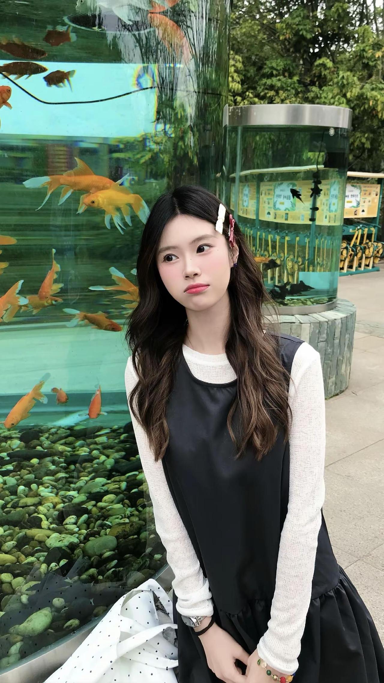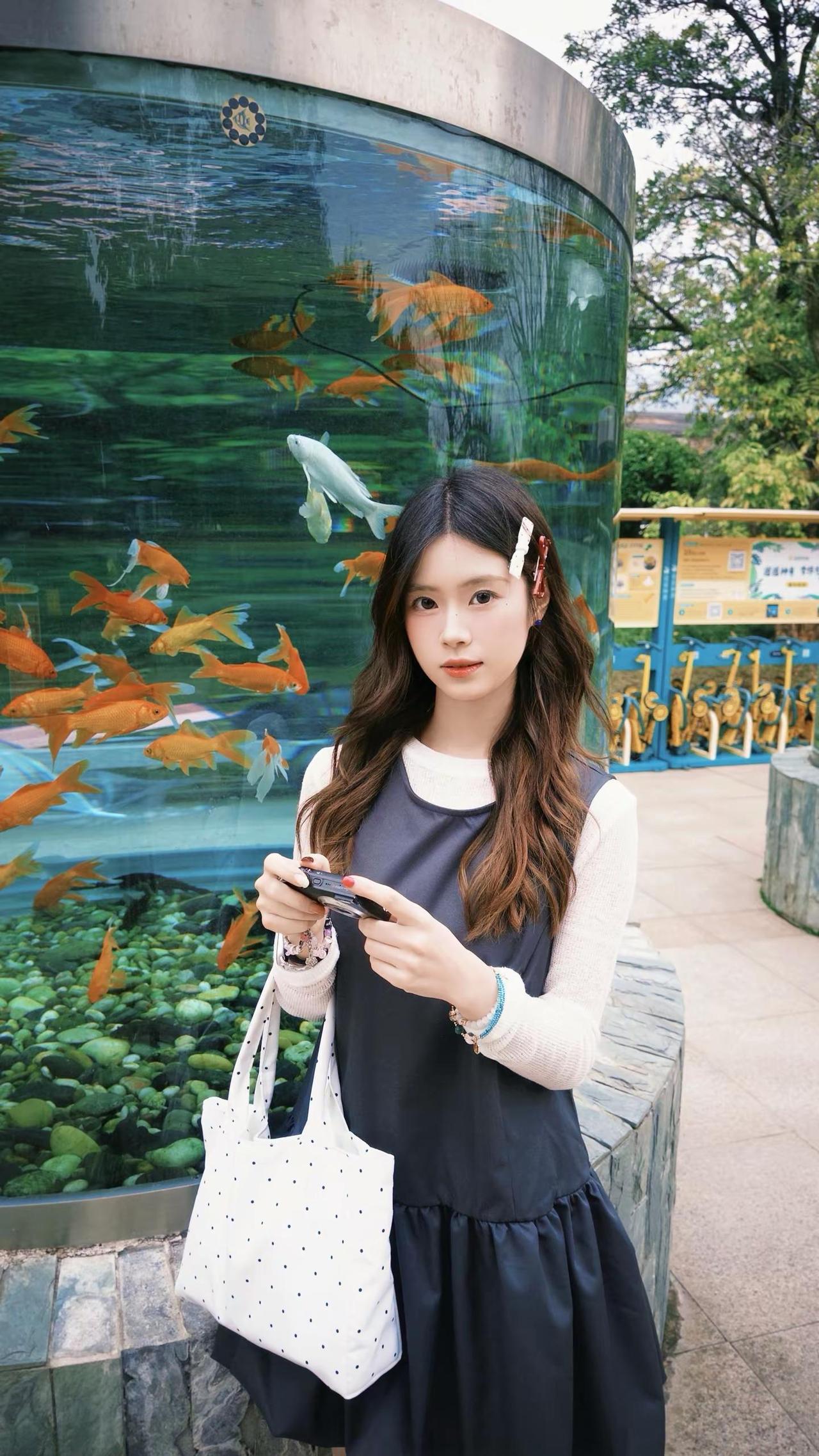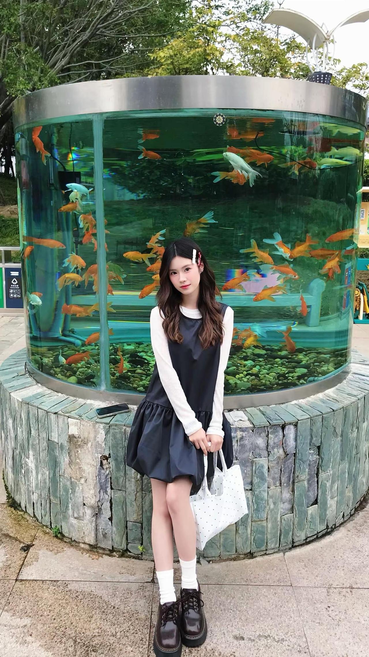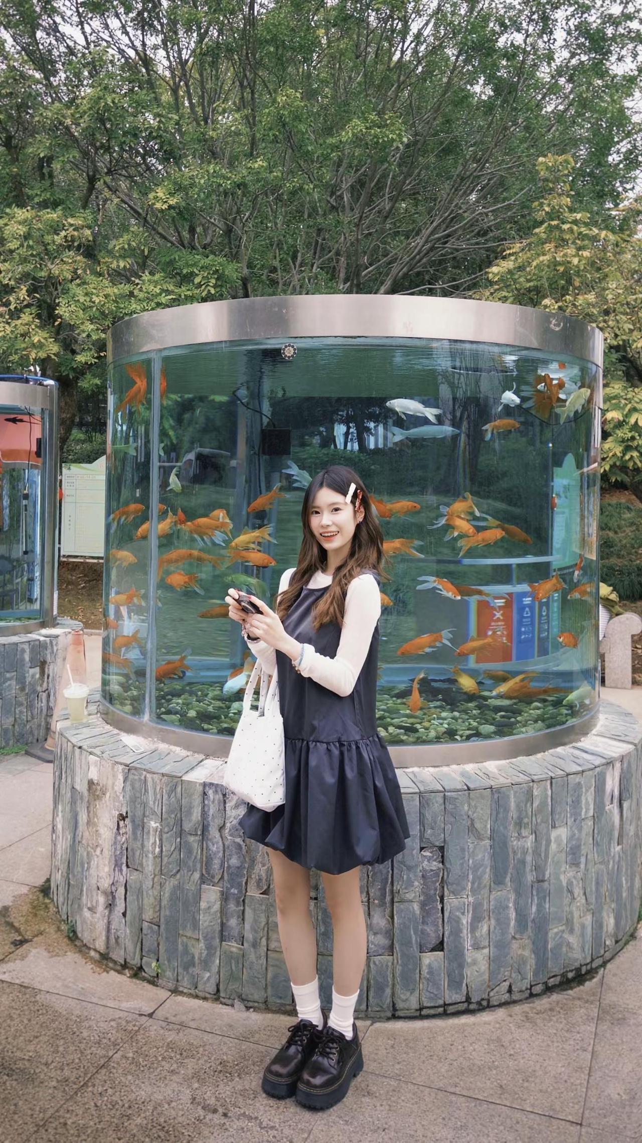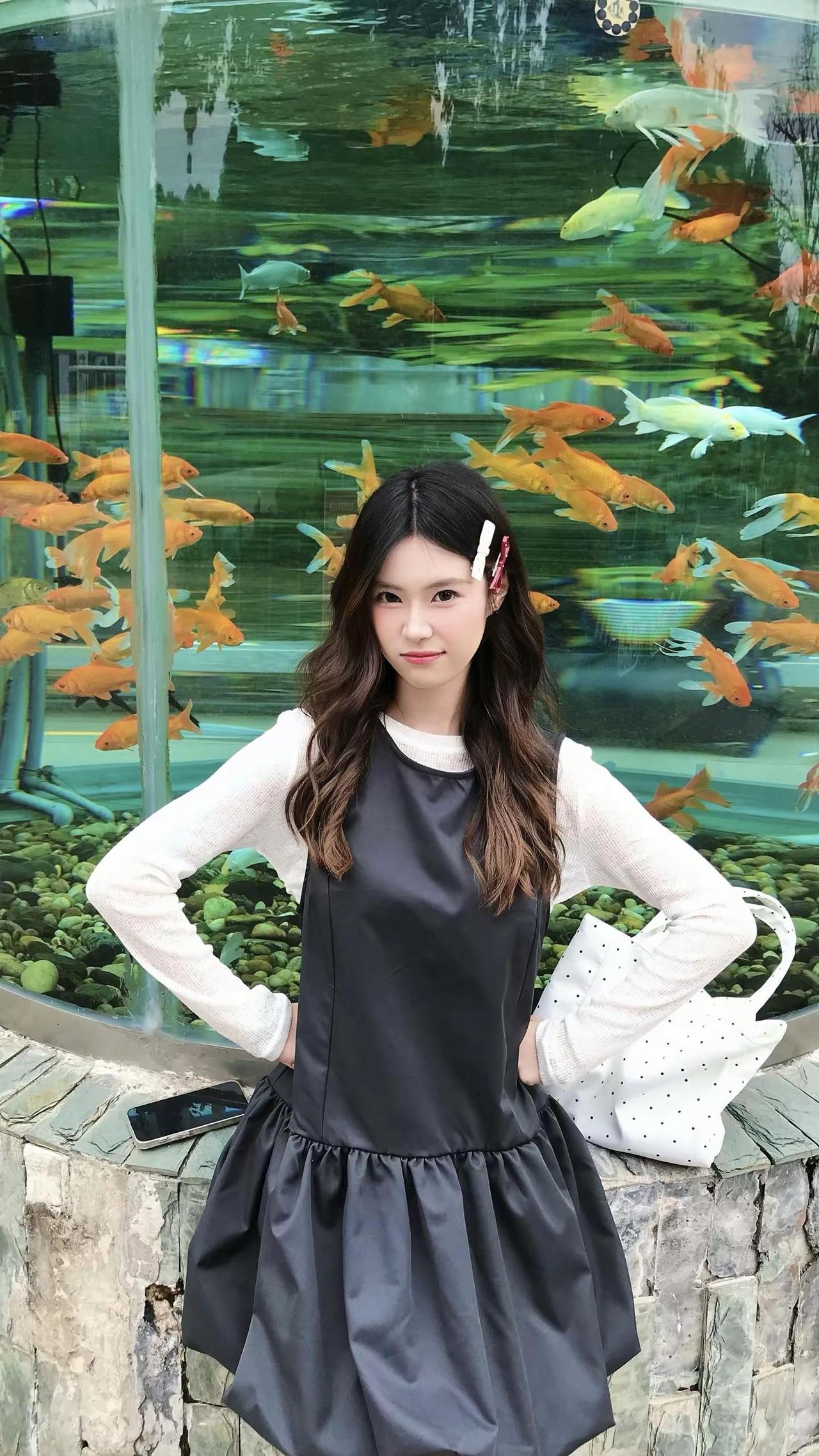 我一直在等待幸福降临但其实幸福早已降临。鱼缸拍照 小黑裙 拍照姿势