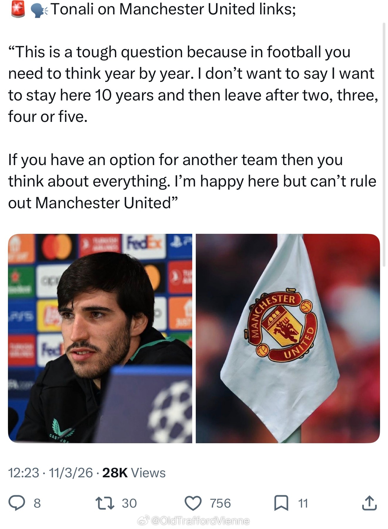 托纳利(发哥,赌王)回应与曼联的绯闻:不排除曼联。推上最近愈演愈烈的是对任何消息真实性的质疑,问AI是否属实,但AI也会被误导的,毕竟是根据大数据学习的。