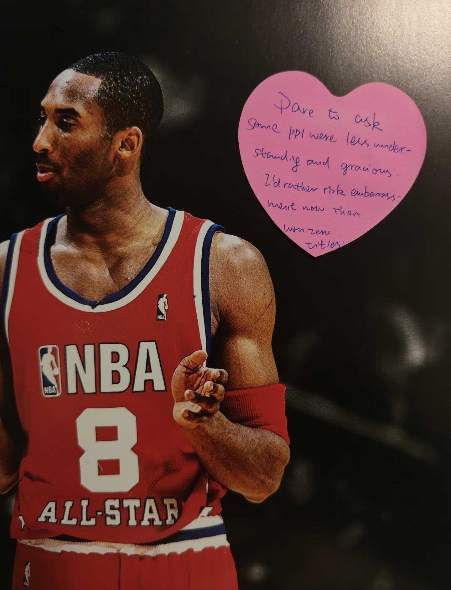 读到书中这段,我瞬间被戳中:"A lot of people appreciate my curiosity and passion.They appreciate that I wasn't just asking to ask,I was genuinely thirsty to hear the answers and gain new info.Some people meanwhile were less understanding and gracious.That was fine with me,and my approach always was thatI'd rather risk embarrassment nowthan be embarrassed later when I won zero titles."