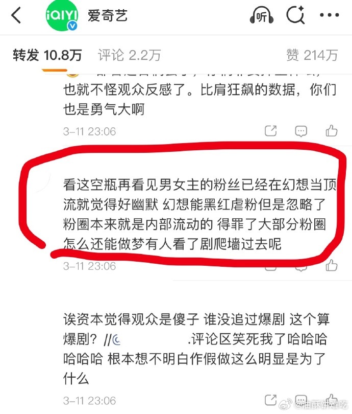 是这样,只有数据没有体感(声量)的剧重要的就是被粉圈吹捧或者当拉踩工具,粉圈如果