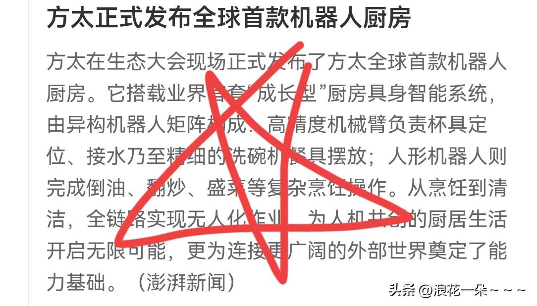 牛!方太正式发布全球首款机器人厨房!看到这个消息给我第一感觉就是以后厨师都不好干了,洗碗工、洗菜工也不好干了。那这些厨师干嘛呢?可能是坐在后台看着电脑,防止机器人炒菜出错吧。你们说是不是?毕竟机器人也会催生很多行业。[捂脸]