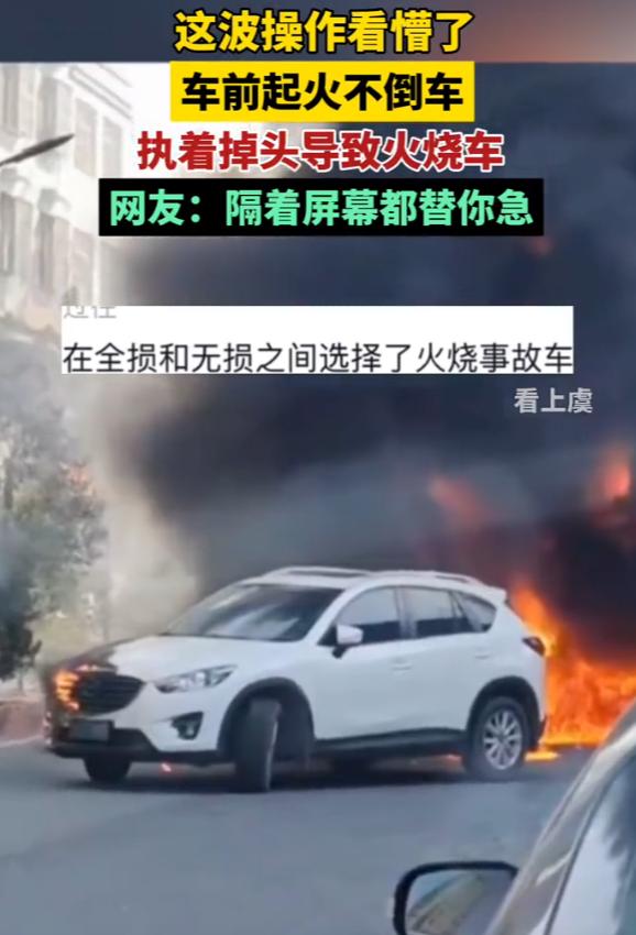 “看的着急!”广东潮州,一车在路中起火,旁边车子的车主看到后,连忙跑过来挪车,不过让人困惑的是,男子没有选择倒车,反而执意选择掉头,结果导致自己的爱车也被烧,网友:在全损和无损之间选择了火烧事故车。 最近在广东潮州的一条路上,发生了一起让人又着急又惋惜的事,看完视频的人,几乎都在念叨:看的着急!本来是一件能轻松避免的意外,就因为车主一个错误的操作,最后两辆车都烧成了废铁架子,想想都觉得可惜。 事情发生在一天上午,当时路面还算平静,来往的车辆正常行驶,谁也没想到,意外会突然降临,突然间一辆停在路中的车子,引擎盖底下突然窜出了火苗,一开始火势不算大,只是小小的一簇,可火这东西从来都不讲道理,短短几分钟的功夫,火苗就疯狂蔓延,整个车头很快就被大火吞噬。 滚滚黑烟直往天上冒,把周围的光线都遮得暗了下来,路过的车辆见状,都纷纷减速避让,赶紧绕着走,生怕被火势波及也怕沾上晦气,现场的气氛一下子变得紧张起来,大家都在一旁着急地观望,却也不敢轻易上前,只能盼着消防快点来。 这时候停在起火车辆斜后方的一辆白色小车,车主发现了火情,连忙从别处跑了过来,看得出来他当时特别慌,围着自己的白色小车转了一圈又一圈,眼神慌乱手脚都有些无措,像是大脑突然卡住了一样,完全不知道该做什么才好。 周围的人都在心里替他着急,心里默念着赶紧倒车啊,往后退个几米,就能远离火场,安安全全的,这都是最简单不过的操作,稍微冷静一点就能想到,可让人万万没想到,也特别困惑的是,这位男子在慌乱中,并没有选择最安全的倒车,反而执意打了方向盘,准备掉头。 谁都知道掉头意味着车头要先朝着火场的方向摆过去,原本他的车离起火车辆就只有几步远,这么一掉头,车子直接就贴到了火场旁边,就在他打方向掉头的瞬间,起火车辆的火苗借着风势,突然蹿高了一大截,像一条火舌一样,瞬间就舔到了白色小车的车头和侧面。 火来得太快根本不给人反应的时间,男子这时候才慌了神,想赶紧加速离开,可已经晚了火焰顺着白色小车的车身快速爬升,转眼间白色小车也被大火包围,两辆车就这样一起陷入了火海,浓烟变得更加浓烈,现场也变得更加混乱,路过的人都纷纷远离,生怕被浓烟呛到,也怕被火势波及。 等消防队员赶到现场的时候,两辆车都已经烧得面目全非,原本完好无损的白色小车,最后变成了一堆焦黑的废铁架子,再也看不出原来的样子,男子站在路边整个人都傻了,呆呆地看着自己被烧毁的爱车,一脸的茫然和懊悔,却什么也做不了,只能眼睁睁看着。 后来有人把现场的视频传到了网上,很快就引起了网友们的热议,评论区里全是惋惜和吐槽,其中有一句评论,说出了大家的心声:“在全损和无损之间,硬是选择了火烧事故车。”还有网友感慨,本来倒个车就能保住的财产,结果因为一个糊涂的掉头操作,直接把爱车送进了火堆,太不值得了。 其实也能理解,男子不是故意要把自己的车烧掉,他只是太着急保住自己的财产,在紧急关头应激反应出了岔子,大脑一片空白,本能盖过了理智,才做出了错误的决定。可也正是这个错误的决定,让他损失惨重。 这件事也给所有人提了个醒,遇到火情这种紧急情况,真的别想太多,也别慌,一定要选最简单、最快的方式撤离,能倒车就赶紧倒车,别琢磨什么掉头更方便、操作更优雅,在火场面前保命永远是第一位的,财产烧了可以再挣,可一旦因为错误操作引发更大的危险,连后悔的机会都没有。