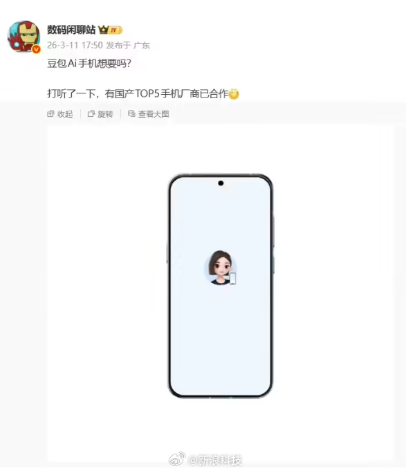【曝有国产手机大厂合作豆包AI手机】博主 今日发文询问是否有人想要豆包 AI 手机。他表示打听了一下,有国产 TOP5 手机厂商已合作。