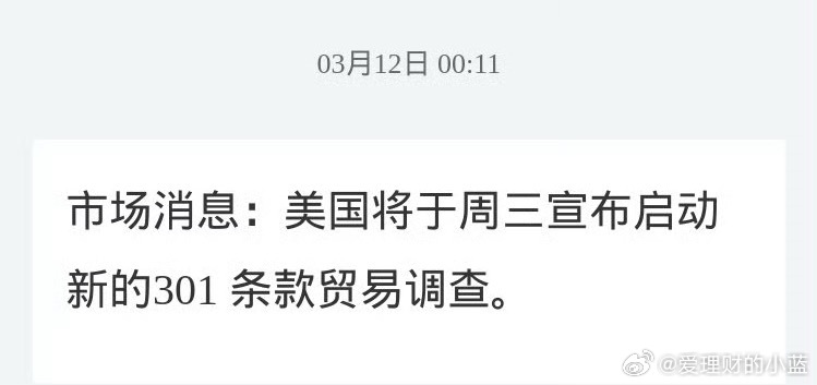 美国将于周三宣布启动新的301 条款贸易调查。