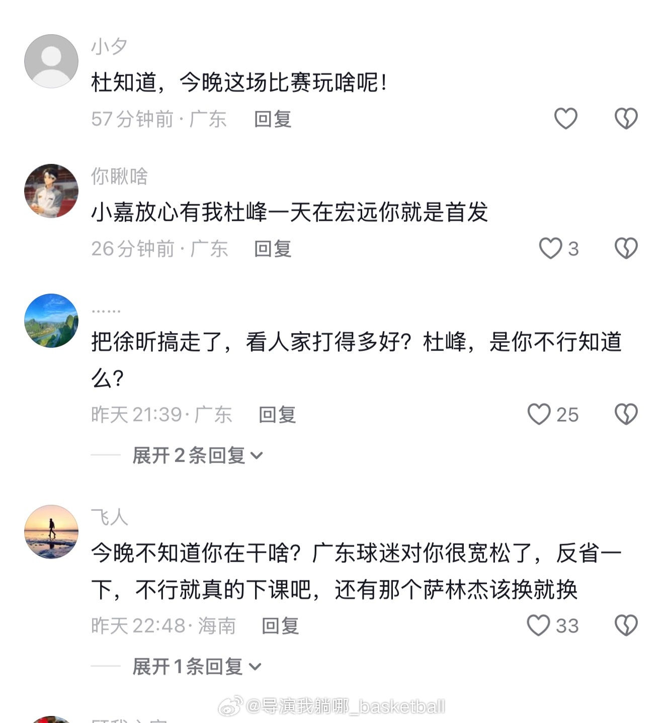 杜指导的社交媒体已经被批评的声音占据了,广东球迷应该多点耐心,杜锋为了广东篮球真的付出了一切