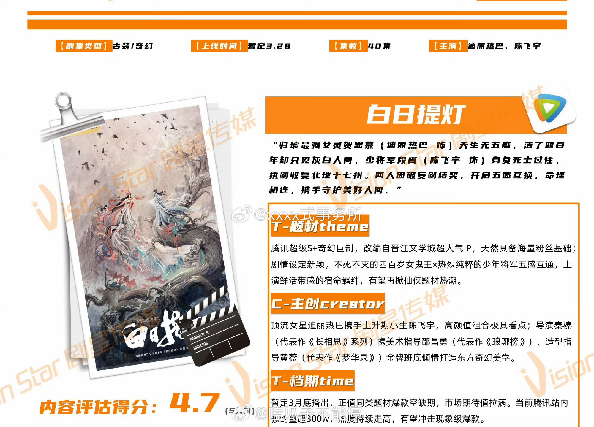 迪丽热巴、陈飞宇《白日提灯》双招商来了!你期待这部剧吗