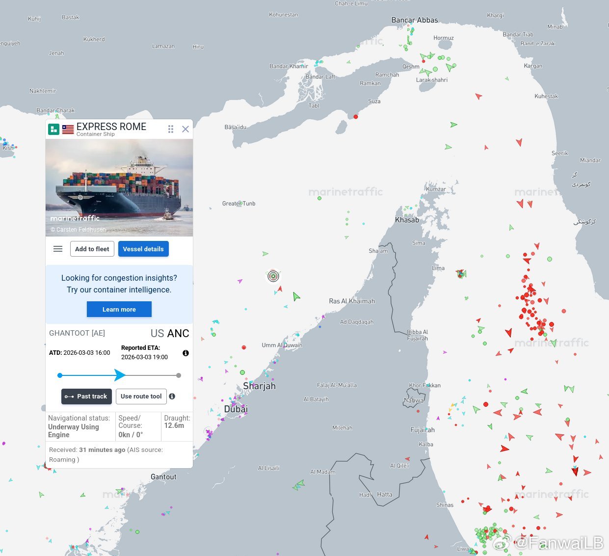 卫队宣布,今天上午打了4条货轮。因为他们不听招呼,强行通过霍尔木兹海峡。