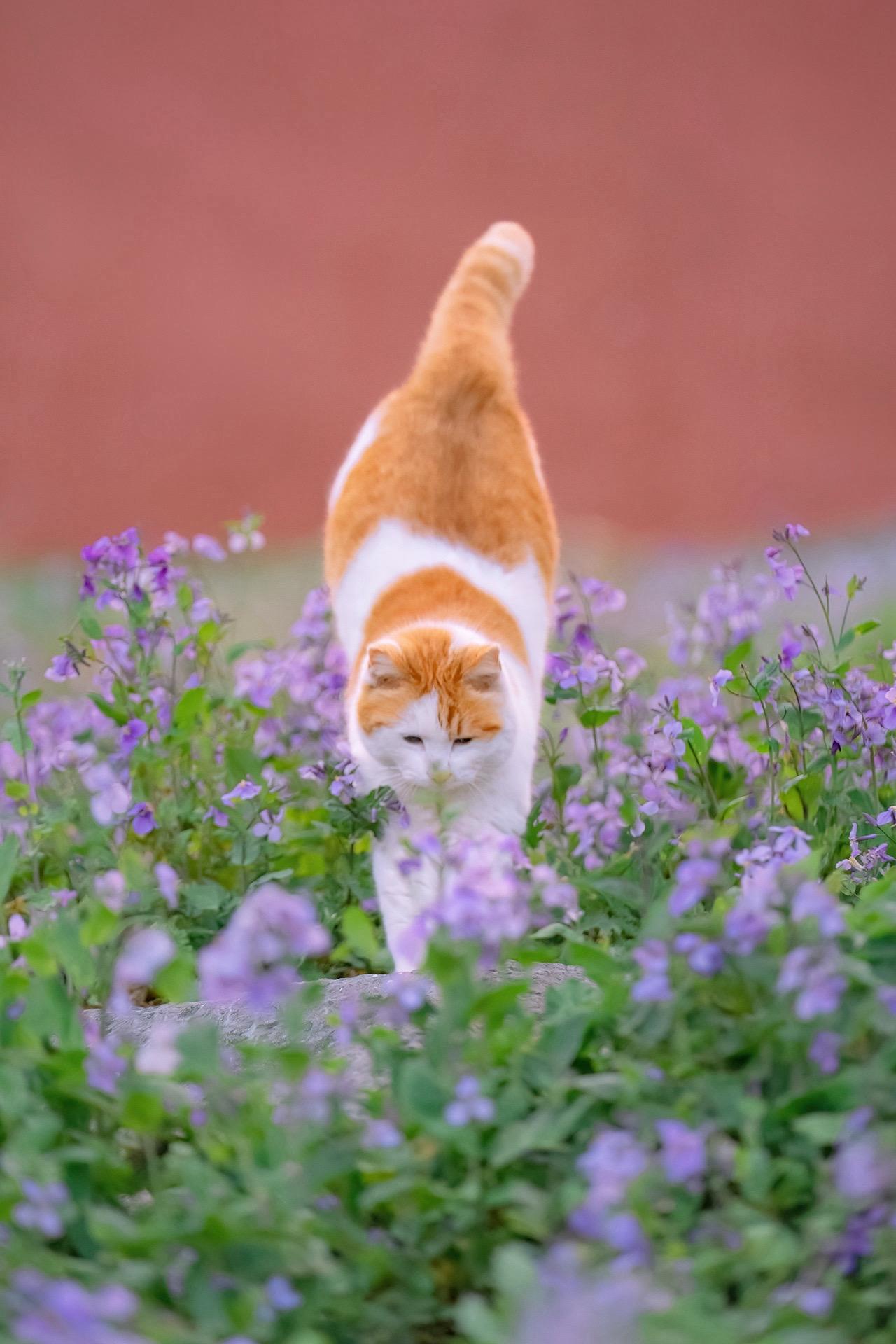 真的一头扎进春天里。终于拍到了,南京的二月兰花丛里,一只橘白胖身跃起...