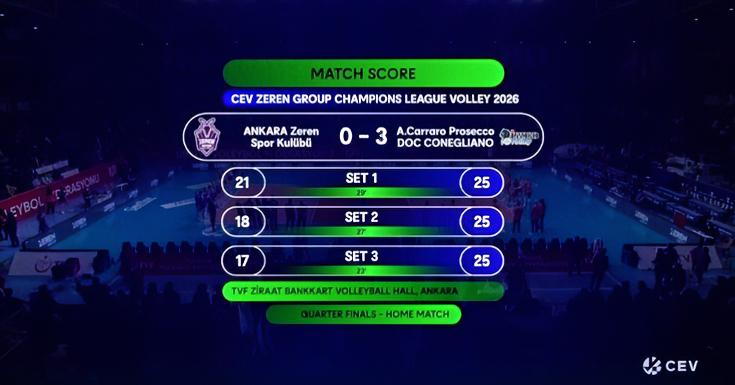 随着朱婷拿下最后一分,科内利亚诺也以25-17拿下第3局,从而客场3-0战胜泽仁体育,这样次回合回到科内主场只要再拿下2局即可晋级半决赛!! 朱婷拿到全场最高的17分,29扣12中4拦1神仙球(沃沃什各种陷害)、MVP给24扣14中拿到14分的西拉,这场比赛沃沃什状态不佳,哈克的状态勉强及格,科内能3-0拿走比赛,泽仁体育失误送分帮了很大的忙[我想静静]、次回合比赛时间是:3月19日3:30。朱婷 科内利亚诺