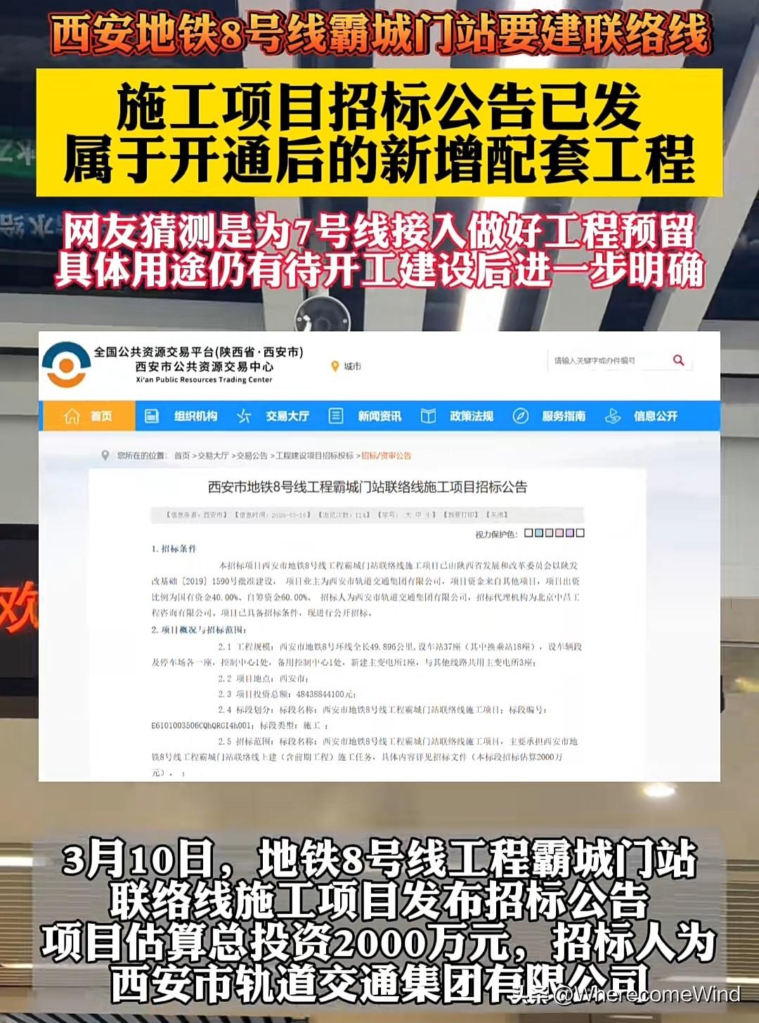 西安地铁7号线真的快来了。 地铁8号线的联络线开始招标, 估计是与地铁7号线联通