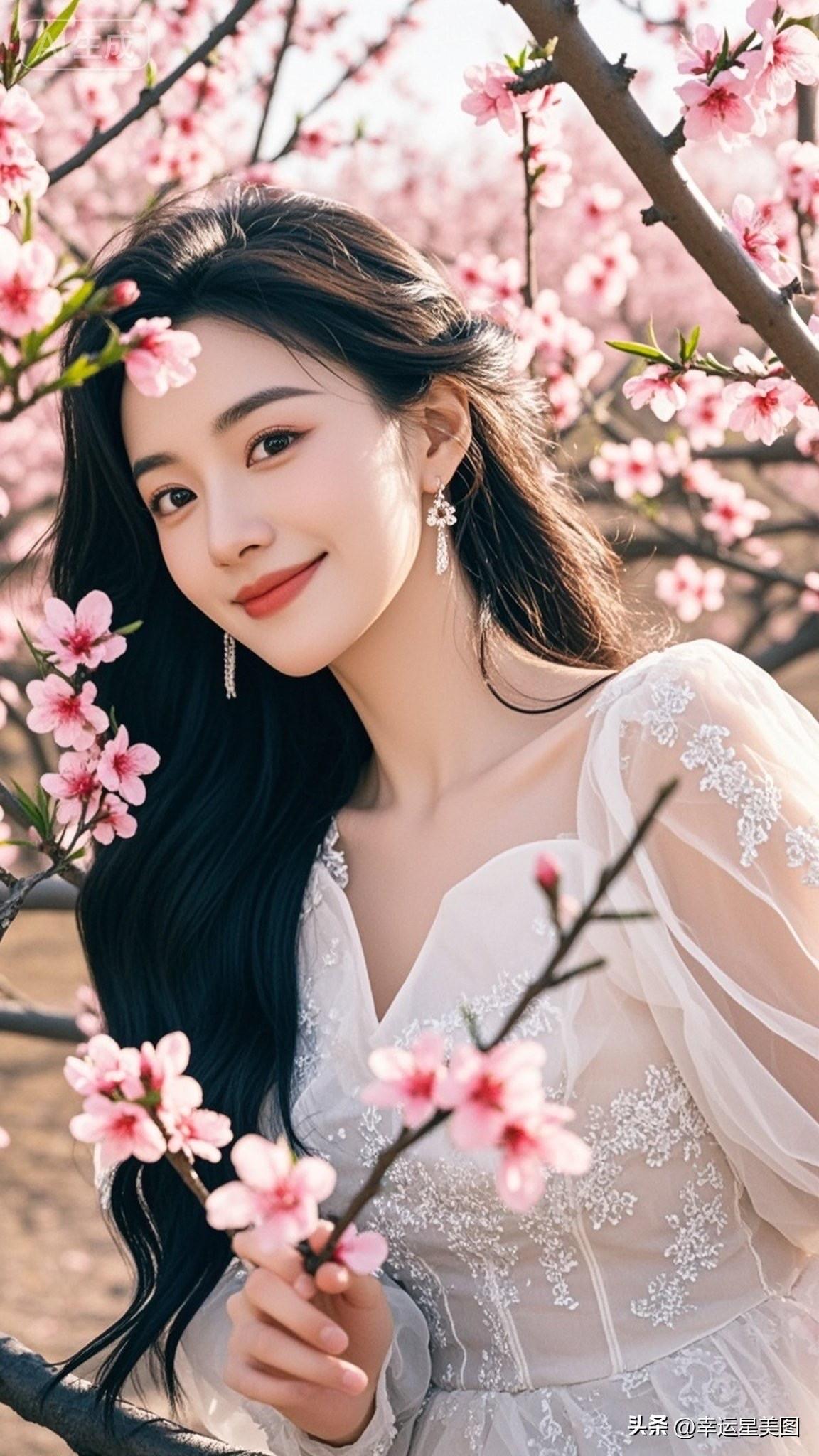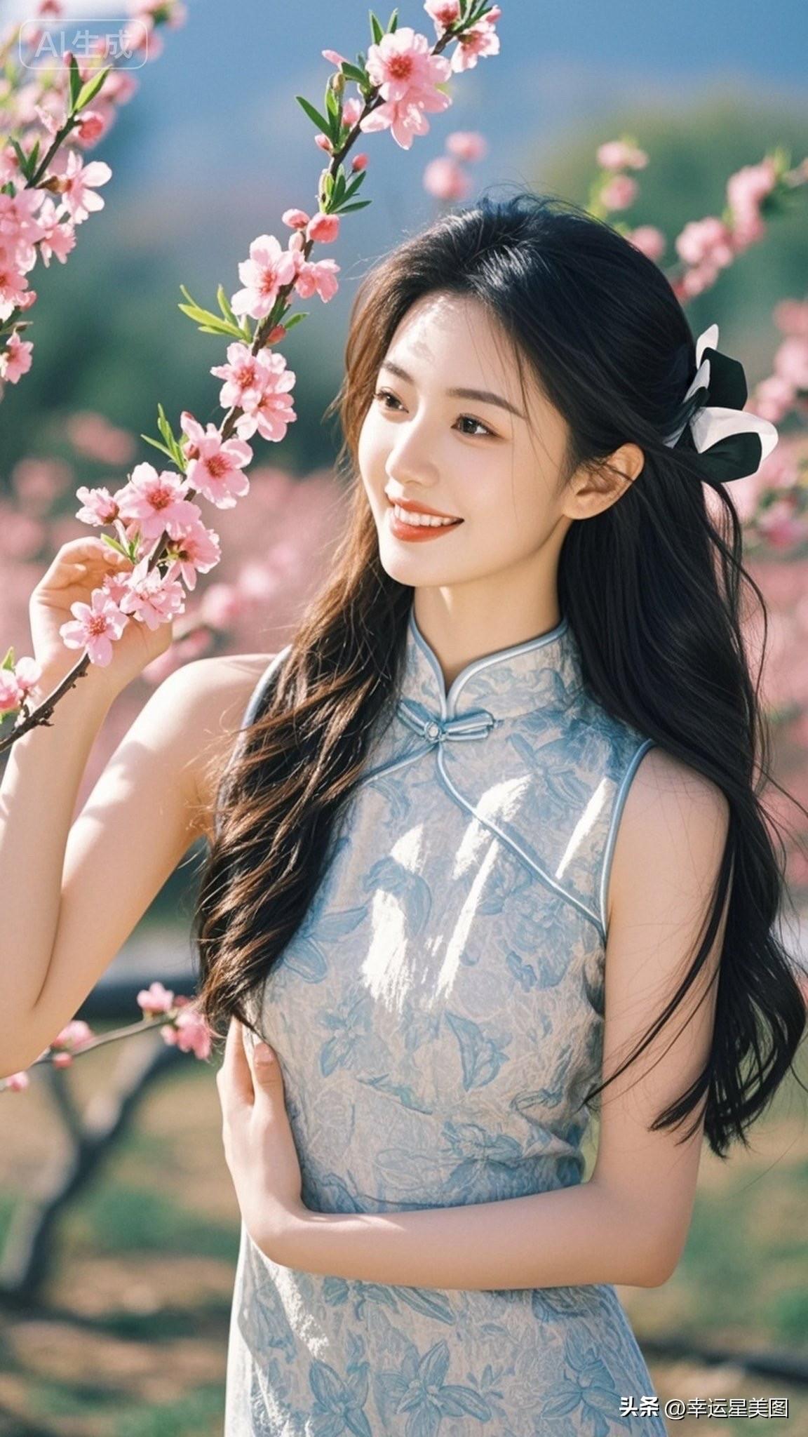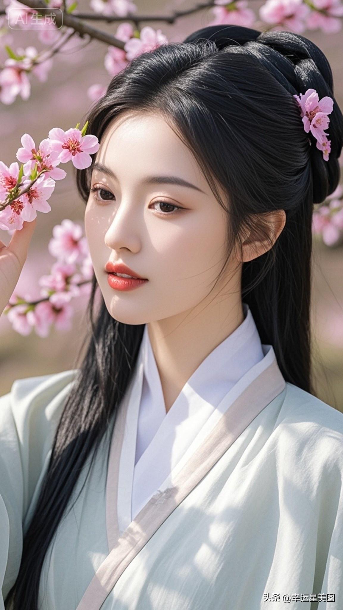 春日少女,花间漫步,古风雅韵,美不胜收。