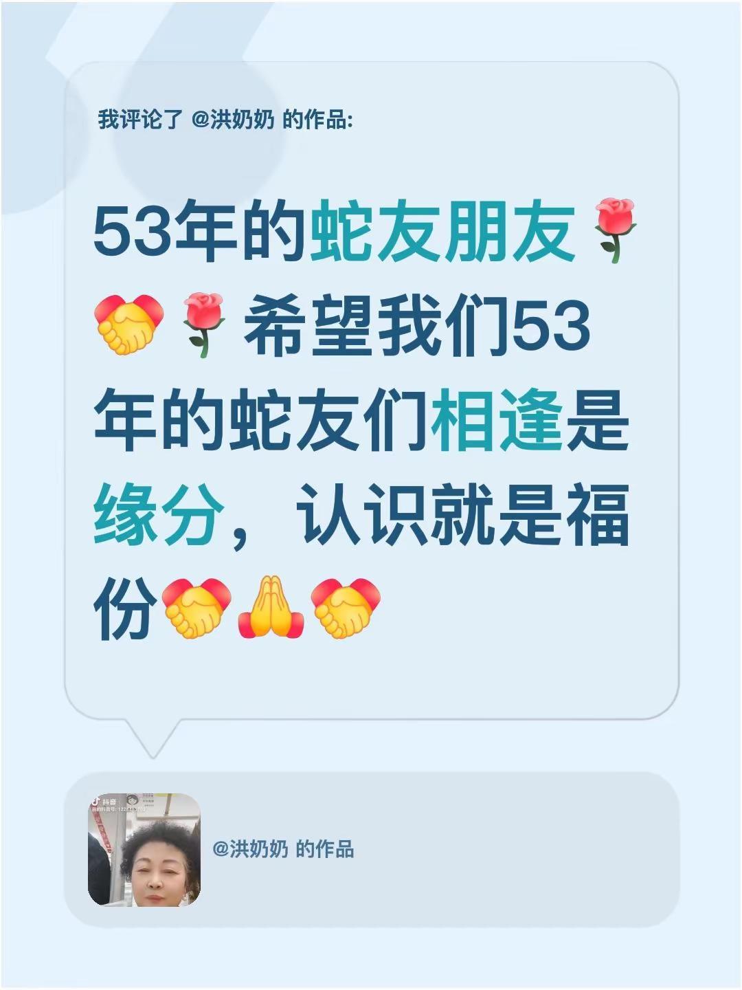我评论了@洪奶奶 的作品:53年的蛇友朋友希望我们53年的蛇友们相逢是缘分,认识