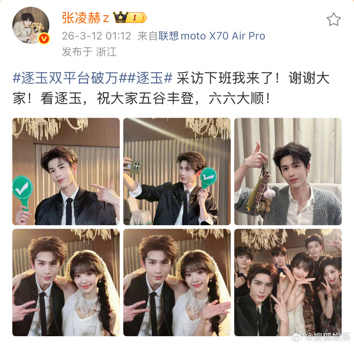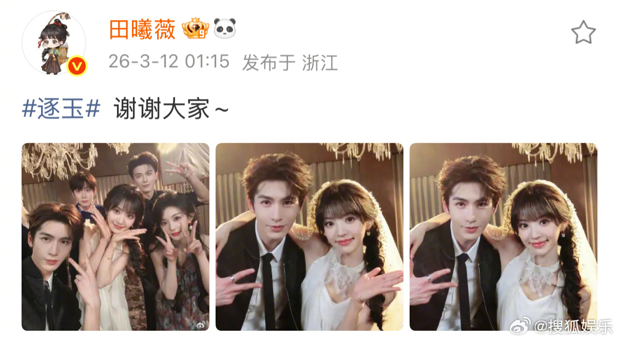 凌晨结束追剧团剧宣后,张凌赫、田曦薇都发了逐玉双平台破万 福利,田作之赫头纱合照好养眼啊!