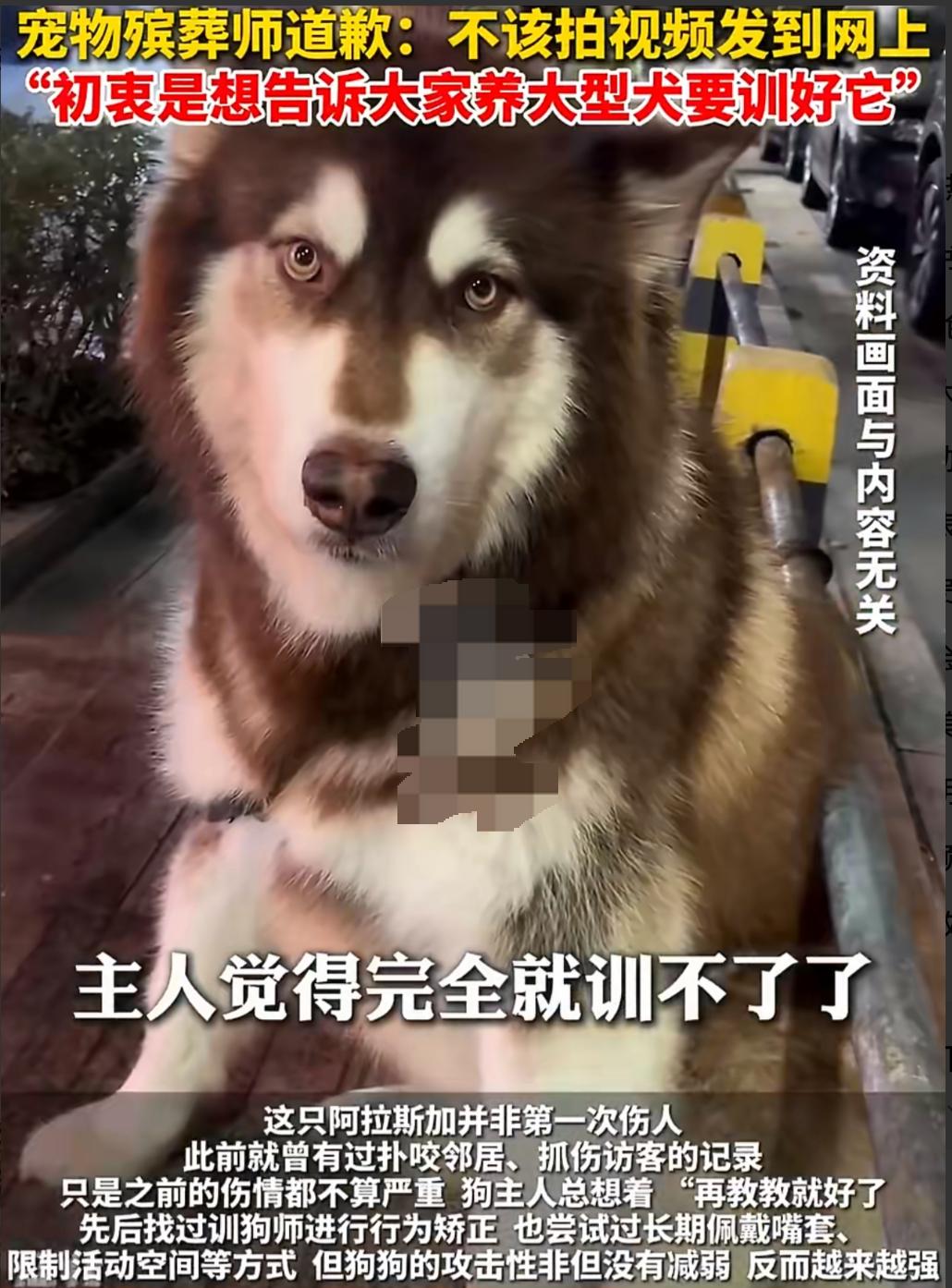 被誉为“狠心主人”的她才是最无奈的受害者,全网都在指责她狠心,可真相藏往往藏在最后。 江苏女子将百斤阿拉斯加安乐,视频一出,骂声席卷而来。“虐狗”“不负责任”“不配养宠”让她一夜之间被钉在了耻辱柱上。没人听她解释,只看见狗狗安静离去的画面,便认定她是冷血之人。 但真相真是如此吗?实际上这只狗并非一时失控,而是8个月内3次伤人,训犬、嘴套、隔离全无效。直到那天,70岁老父亲被它狠狠咬住,血肉模糊送进手术室,她才意识到不能再纵容下去了。这不是一时冲动,此前她一次次心软,一次次给狗机会,换来的却是至亲躺在手术台上。 当舆论高举爱狗大旗批判她时,没人看见她在医院的崩溃,没人知道她每晚被噩梦惊醒。更讽刺的是,引发网暴的安乐视频,是殡葬师擅自发布。他初衷是警示养宠风险,却把一个家庭的伤痛变成流量盛宴。 我们以为在惩罚恶人,实则在逼害受害者。真正的残忍,不是对失控恶犬止损,而是用圣母心绑架人命。主人没做错,她只是在狗和家人之间,选择了活人。 别让舆论的刀子,伤了最无辜的人。