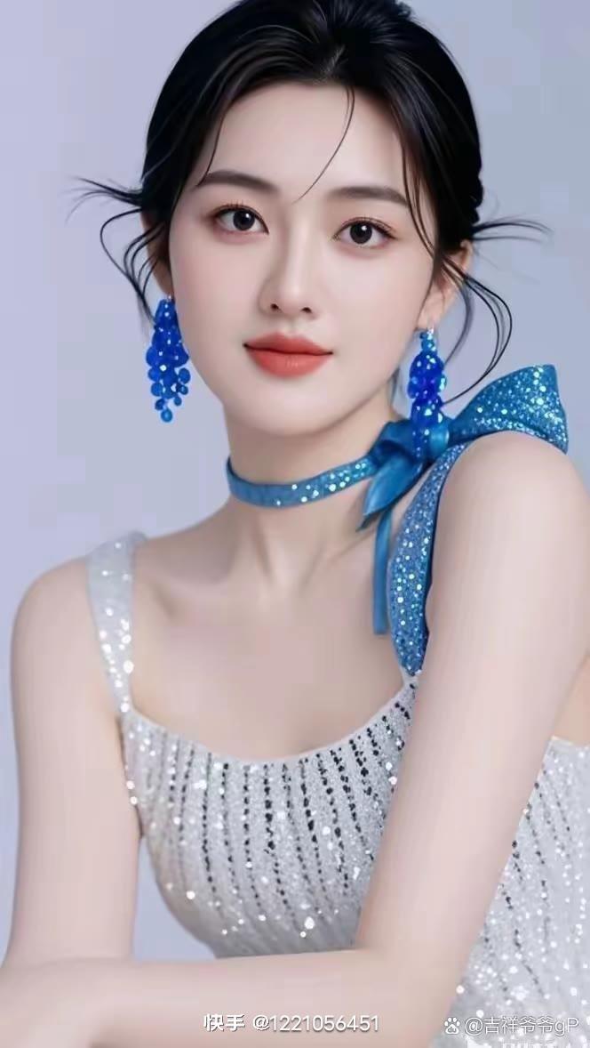 优雅气质,蓝白相间,精致妆容,时尚穿搭