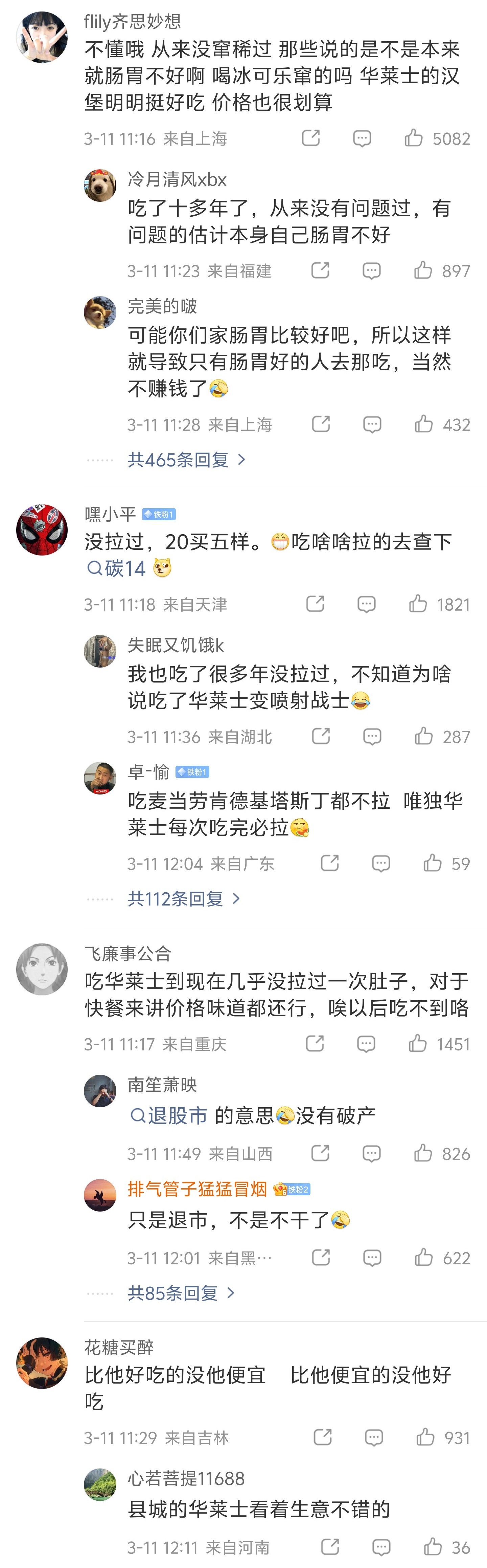 华莱士正式宣布退市 不知道为什么看到这种评论区我就想起了魅族粉丝