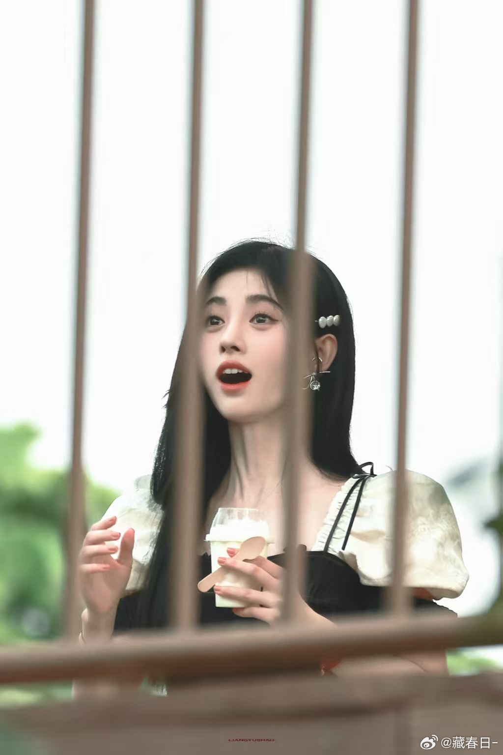刘亦菲这条裤子挺养生,毕竟降温了肚脐眼必须护住啊