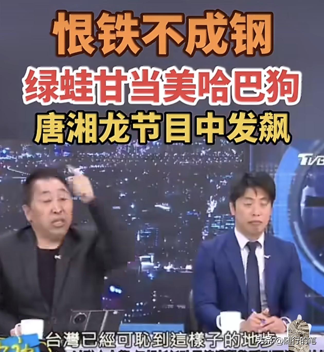 唐湘龙在赵少康的节目中发飙了,不是针对谁,而是针对民进党当局在面对美以攻击伊朗这件事情上,民进党当局和绿媒一面倒的站在美国美以一边,双标看待美以对伊朗不公平的袭击。 唐湘龙几分钟的发言,在场评论员都面面相觑,民进党的评论员哑口无言,赵少康低头沉思。 唐湘龙在一些重大事情上的看法,特别是国际间的一些博弈格局,还是非常客观公正的。在赵少康的节目中,发表过不少令人酣畅淋漓的精彩评论。唐湘龙虽然与赵少康关系不错,但也不是经常参加赵少康这档节目,与赵少康看待很多事情的观点也不尽相同,在节目中往往会有与众不同的看法。如果唐湘龙是固定评论嘉宾,估计平时这些在赵少康节目中的民进党政客,来一次会被唐湘龙怼一次。