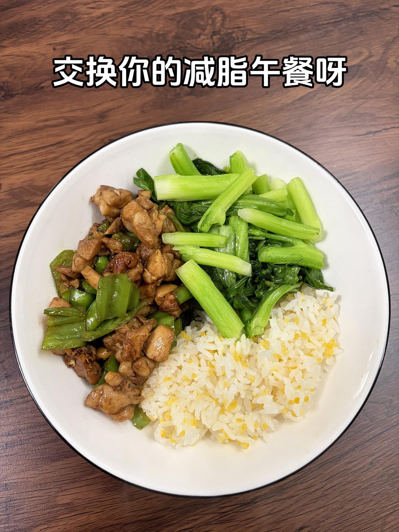 最好的减脂餐是家常菜,目标95斤,加油 今日减脂午餐:辣椒炒鸡+素炒菜苔