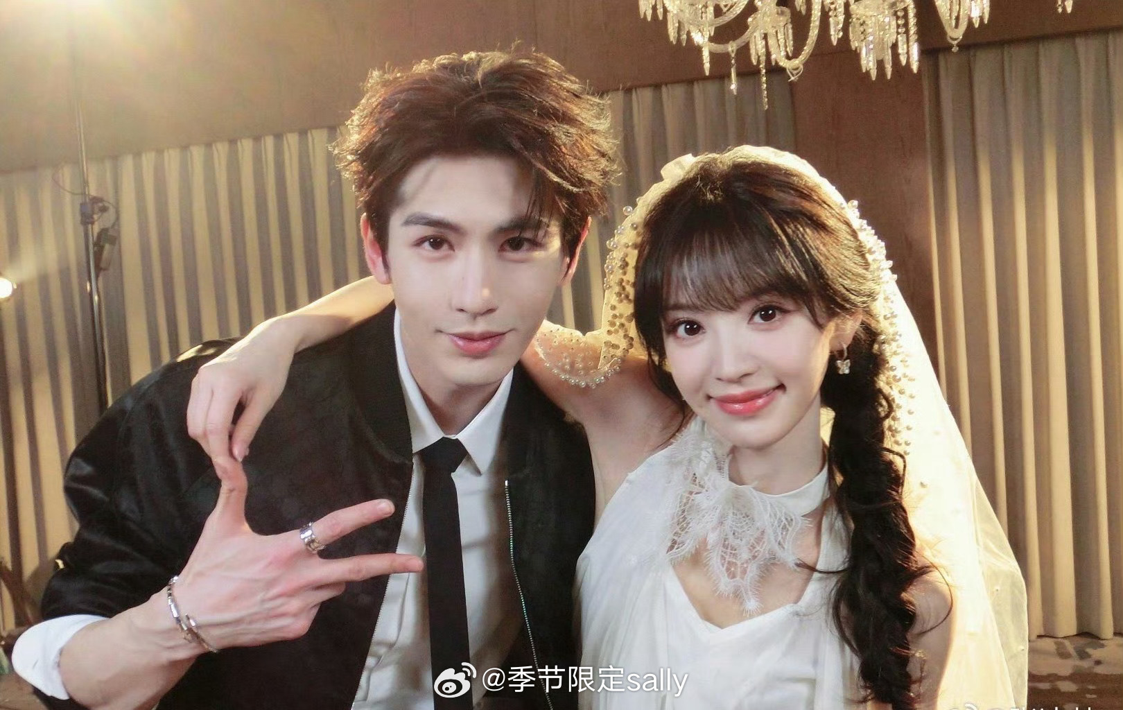 张凌赫田曦薇发双人头纱合照庆祝双平台破万