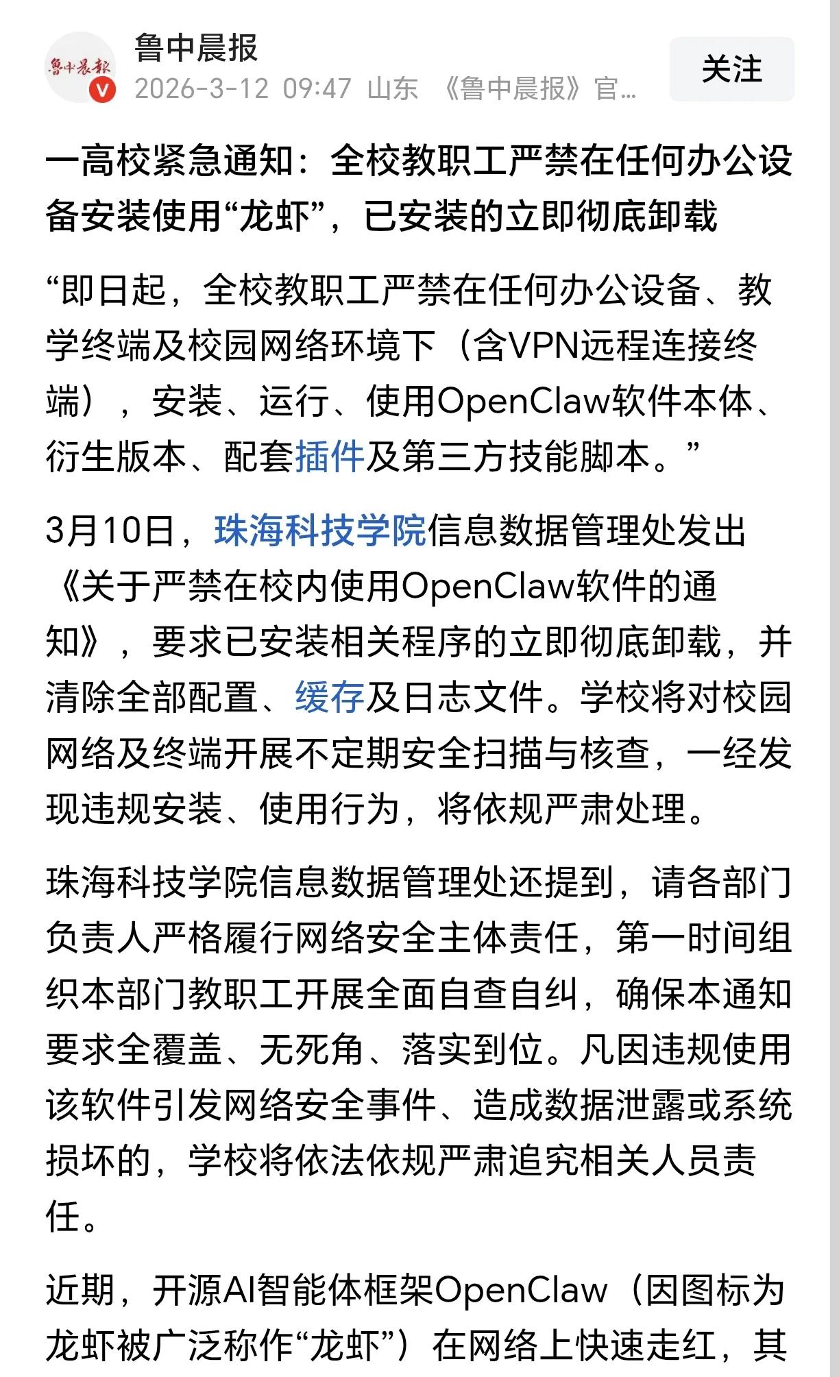 现在已经网上推出AI龙虾收费卸载服务了。 很多单位和国家部门出于安全风险考虑,都告诫谨慎安装或者干脆不要安装OpenClaw(即龙虾)。 安全风险、使用成本、技术门槛……这一系列因素注定了AI“养龙虾”热潮不会持续太久,能长期安装使用的都是如互联网公司、金融服务业等专业机构,把“养龙虾”作为专业服务工具使用。 AI“养龙虾”热潮能持续多久龙虾AI 小龙虾AI 龙虾智能体 AI龙虾收费 软件龙虾 龙虾人工智能