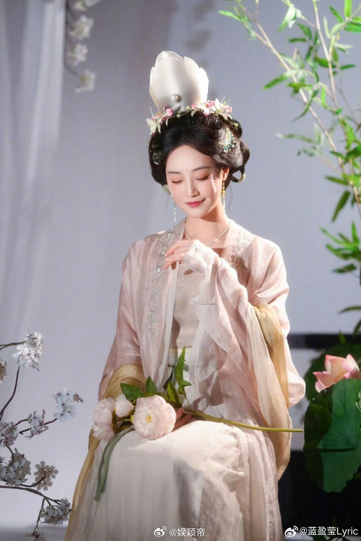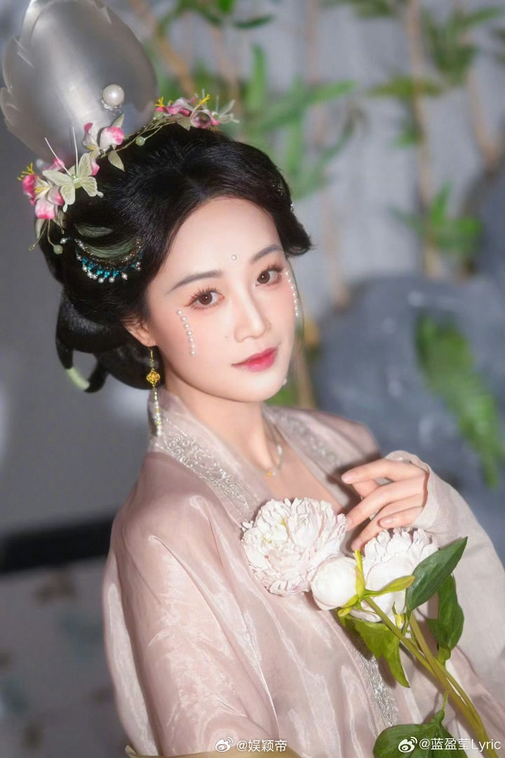 蓝盈莹宋式泪妆 珍珠缀在眼角眉梢,像清晨的露水落在花瓣上。蓝盈莹这一身宋式妆造,把清冷和温婉糅在一起,眉目间尽是东方美学的含蓄韵味。