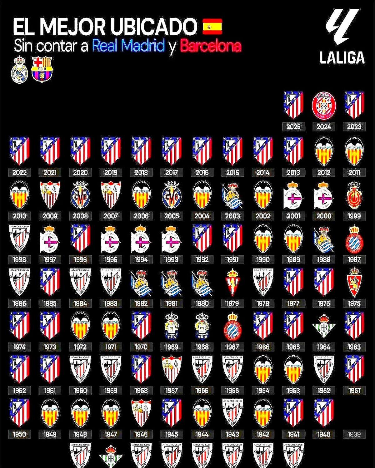 都说西甲是皇马巴萨的二人转,其实都看错了。 砸钱拿冠军不稀奇,真正牛的是用人家三分之一的预算,硬是把你挤出前三,还一待就是十几年。说的就是西蒙尼的马竞。 联赛27轮踢完,马竞稳坐第三,领先第五名11分,欧战资格早就揣兜里了。防守数据更吓人,27场只丢25球,下限高得离谱。 要知道,西蒙尼2011年接手前,这队连续14年没进过前三。他来了14年,拿了两次西甲冠军,其他时候基本就没掉出过前三。 靠球星爆种赢球是常规操作,能靠体系兜底,年年稳定输出才是真本事。 球星总会老去,但一个铁血的体系,能让你永远坐在牌桌上。