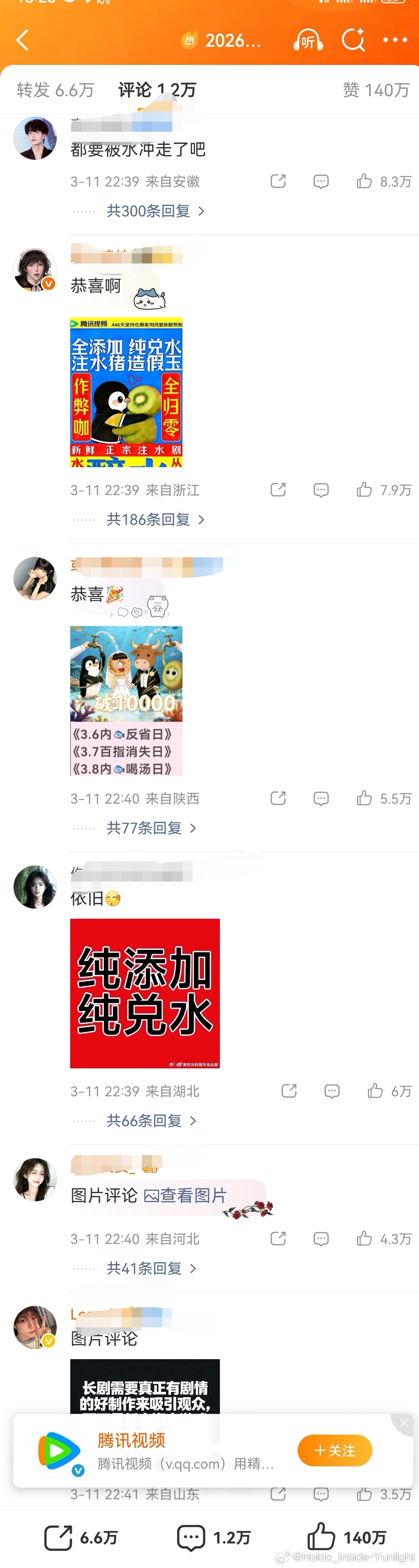 腾讯视频修改逐玉战报这个笑死我了,而且评论区我一刷全是质疑,粉丝完全控不过来