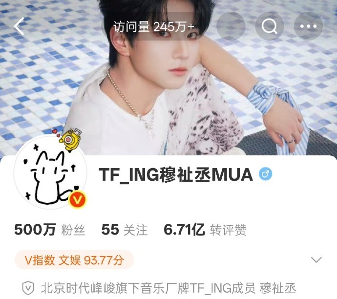 穆祉丞粉丝量破500万了穆祉丞粉丝量破500W了穆祉丞粉丝量破500W了