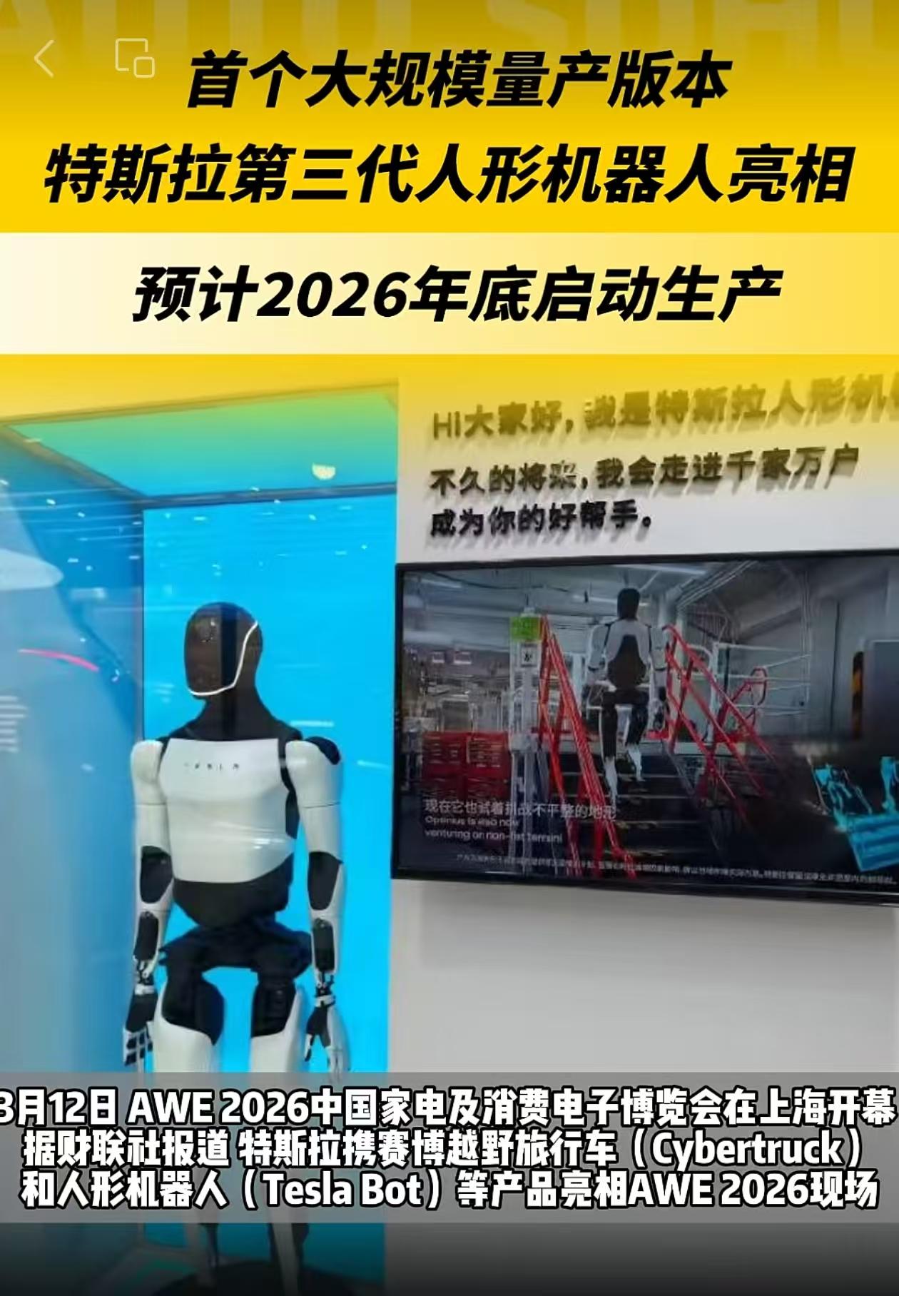 3月12日,特斯拉第三代人形机器人在AWE电子展上亮相,现场工作人员介绍此次展出的人形机器人为即将发布的第三代人形机器人,正式版本将与现场版本有细微差异,2026年底启动量产,长期规划产能100万台,马斯克称为世界上最先进的机器人,中国供应链占据绝对主导地位。 从最近国内供应链反馈来看,第一批规模订单基本定在3月底,考虑发货和装机时间,基本量产节点要在夏天,当前T链的PPA陆续下达落地,供应链格局逐步清晰,预计3-4月密集催化到来,不排除现在的行情为在这之前洗筹的可能。 T链:执行器【三花,拓普,新泉】; 丝杠【恒立,荣泰,北特,五洲】; 谐波【斯菱】; 结构件及其他【福赛,长盈等】; 头部模组【蓝思,均胜】; 关注日盈,震裕,科达利等。