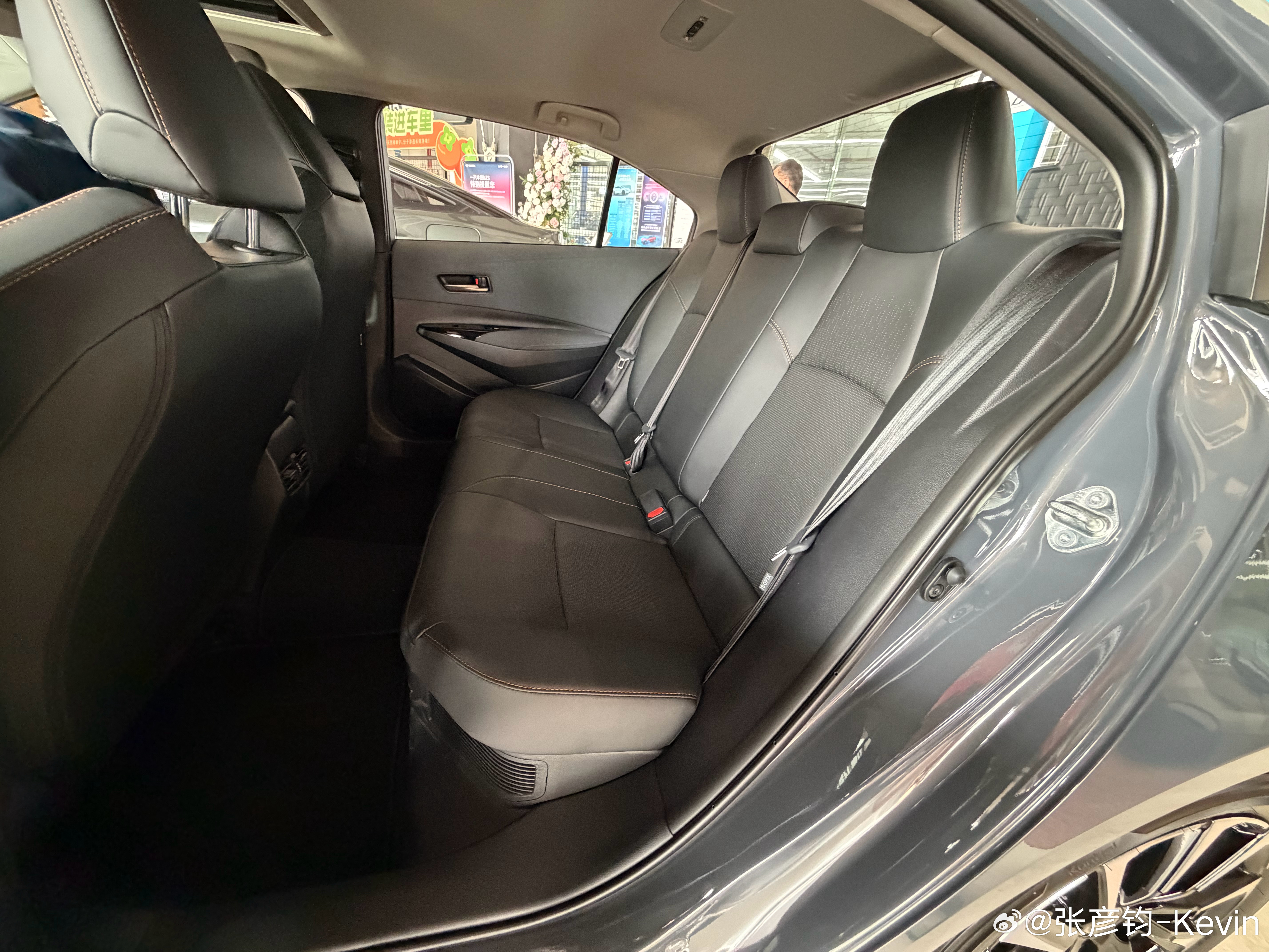 但是这玩意后面是真大啊!而且座垫特别长,我185身高,大腿膝盖下沿也能有很好的衬托,头部空间不充裕,但也不顶头,这可比老卡罗拉大多了。