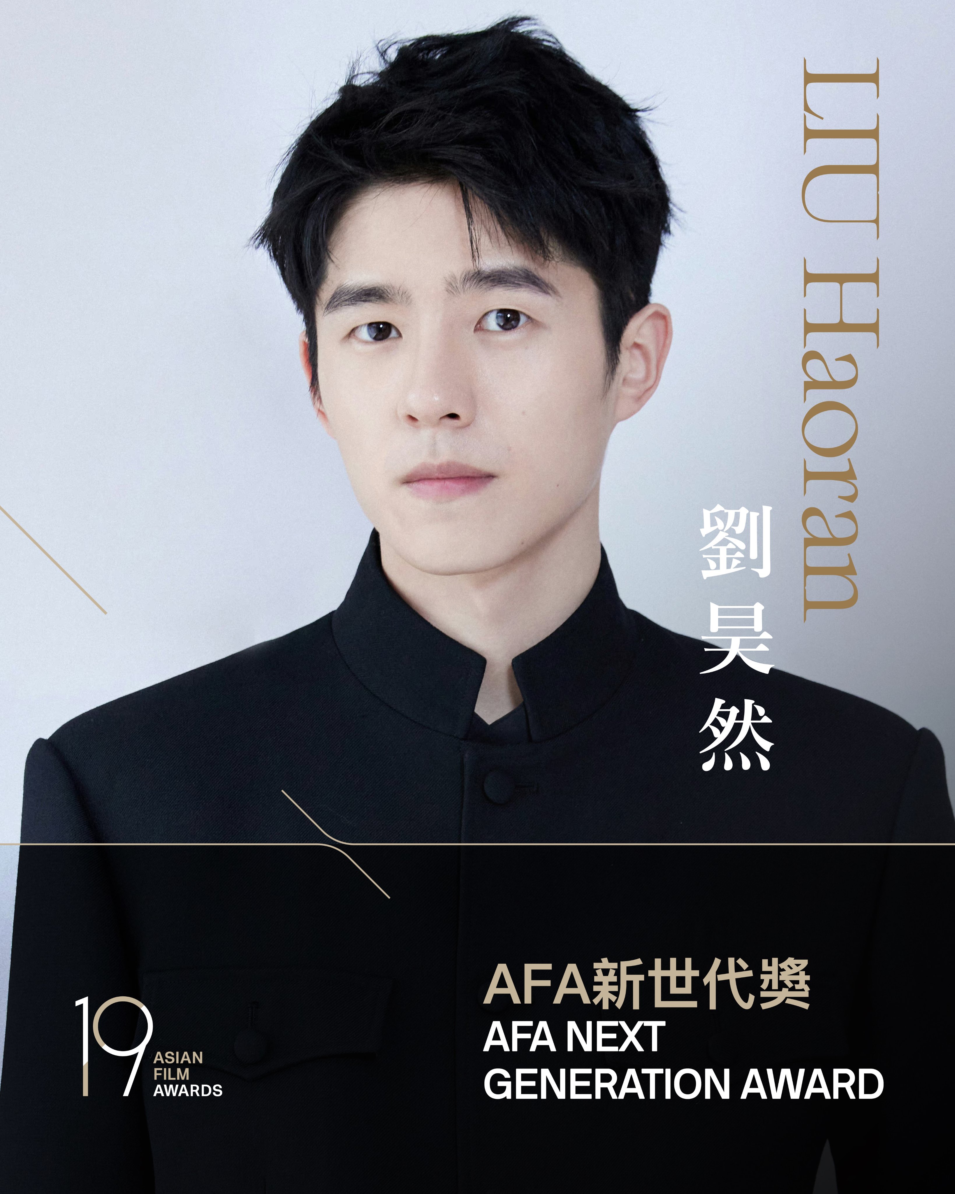 刘昊然亚洲电影大奖AFA新世代奖第19届亚洲电影大奖公布今年的荣誉奖获奖名单,刘昊然获得本届亚洲电影大奖AFA新世代奖奖项。他成为首位获得该奖项的中国内地男演员,也是继赵丽颖、吴慷仁之后第三位华人获奖者。