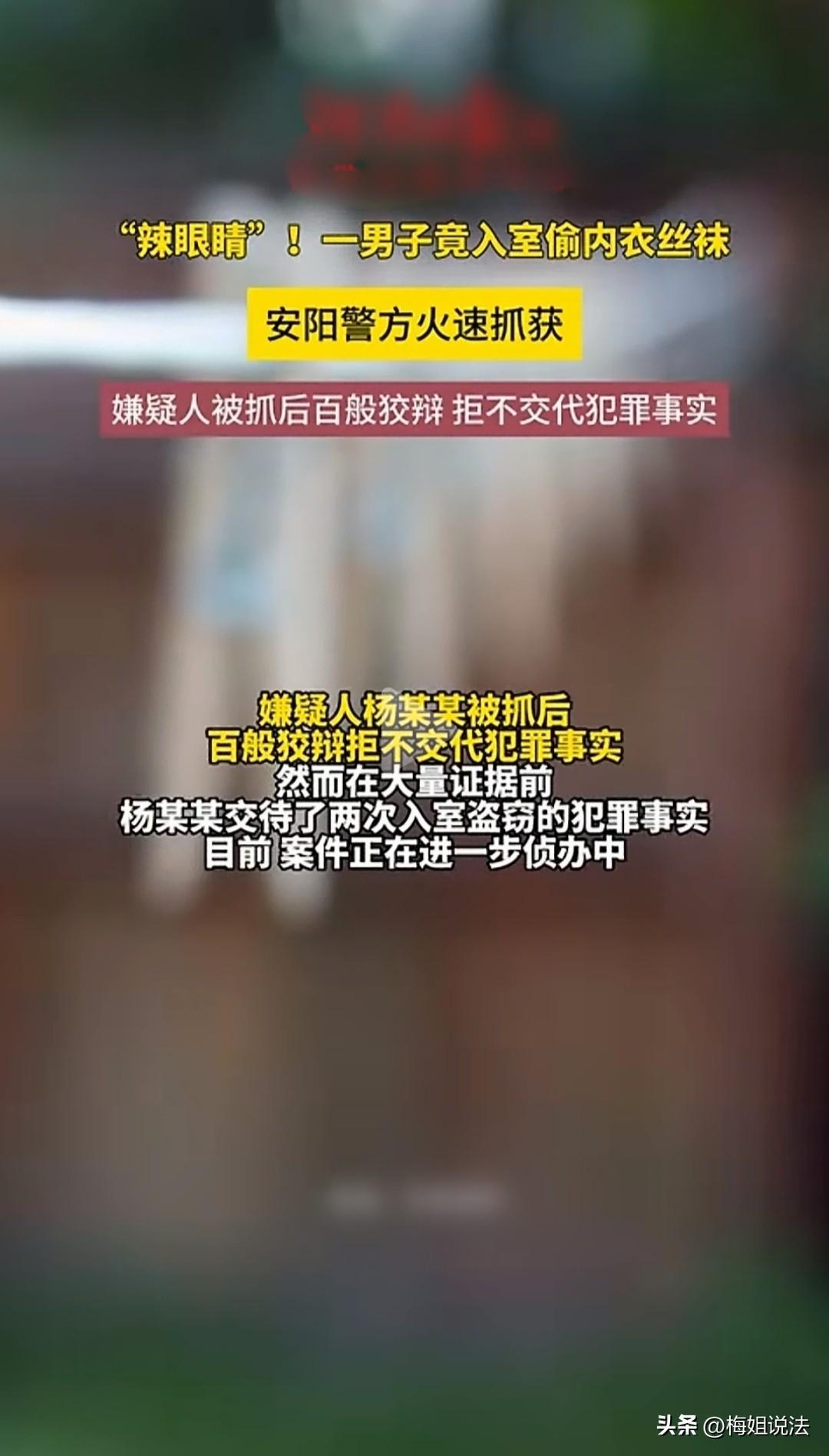 河南安阳,杨某某专偷女性内衣、内裤,被抓到后撒泼抵赖,可看到大量证据后,他不得不老实交代。据杨某说,他看到女人的内衣就忍不住,已经偷了两次了。 河南安阳,杨某某像往常一样送完一单外卖,但他并不急着接下一单,只是在小区楼道内瞎溜达。 他眼睛滴溜溜的转,希望可以发现目标,不让自己白跑一趟。正寻思着,突然他眼睛眼冒金光,脸上也挂起了笑。 顺着杨某某的视角看去,原来是一家住户门并没有关严,这家女主人急着出门,就没有完全把门完全关上。 但,人家关不关门,关他什么事呢?他到底想干啥? 杨某某从门缝里发现了自己的目标,这家的阳台上晾着女主人清洗完的内衣还有丝袜等。 女主人怎么也没想到,这些正常的女性衣物,竟给她家带来这么大的祸事! 为了顺利得手,杨某某在周围巡视一圈,终于发现了一个藏身的好地方,他躲在暗处,随时注意着这家人的动静。 女主人收拾利索后就关门离开了,这正常的关门声在传到了杨某某的耳朵里,就像胜利的号角一样,他知道这次自己又要得手了。 为了安全起见,他在暗处等了一段时间,怕这家女主人突然有事再回来,等完全没有声音以后,杨某某快速跑到这家人的门口,抄起随身携带的家伙事,轻车熟路的撬开了这家人的门。 进门以后,他先是走到阳台上将女人的内衣、丝袜以及其他的一些女性的衣物揣入自己怀中。 又到卧室、客厅等地方到处翻找一些值钱的东西,很快一些金银首饰、台笔记本电脑等就就被杨某某顺走了。 到了下班点,这家女主人像往常一样回到自己家中,但一到门口,她就发现了不对劲。 自家的门锁被撬了,她赶紧开门进屋查看,一看到屋子里的场景她害怕极了。 之前整洁温馨的家,已经被翻的乱七八糟。她的笔记本电脑,还有自己的首饰等贵重物品都不见了。 更令她气愤的是,自己的丝袜、内衣、内裤也被小偷偷走了。 这个小偷偷钱就算了,竟然偷女性的私密衣物,简直就是个大变态。 女主人第一时间报了警,民警在接到报案后,详细了解案情细节,快速对杨某某展开抓捕计划。 没过多长时间,民警们就在附近的网吧内,顺利找到了这个偷窃女性衣物的杨某某。 刚开始,杨某某态度非常蛮横,嚣张的表示,你们抓错人了,我就是一个遵纪守法的好公民,再这样我就告你们。 但是,民警不仅在他身上搜到了一些作案工具,还在杨某某的家中搜到了受害人所丢失的内衣、内裤等物品。 面对铁证如山的证据,杨某某再想抵赖也不行了,最后他只得一五一十交代自己的罪行。 他表示,自己看见女性的内衣、内裤、丝袜啥的,就兴奋、忍不住,老想把它们都弄手里。 杨某某老实交代,自己已经两次偷了两次了,第一次偷的时候,他还很害怕,怕被抓起来。 但是偷完以后,发现并没有人报警,他安全的很,他的胆子就大了起来,马上就又开始偷了。 杨某某的案子相关部门还在进一步侦办中,那么,这个心理变态的杨某某究竟会受到怎样的法律制裁呢? 《刑法》第二百六十四条规定,多次盗窃、入户盗窃、携带凶器盗窃、扒窃的,处三年以下有期徒刑、拘役或者管制,并处或者单处罚金;数额巨大或者有其他严重情节的,处三年以上十年以下有期徒刑,并处罚金 。 从以上法律条款中,我们可以了解到杨某某两次入户盗窃的行为已经违反刑法了。 具体的处罚金额还有判刑时间,得根据他偷到的钱款多少以及携没携带凶器等情况进行量刑。 类似杨某某这种犯罪分子,不仅应该受到法律的严惩,更应该受到严厉的思想教育,彻底让他们认识到自己的错误。