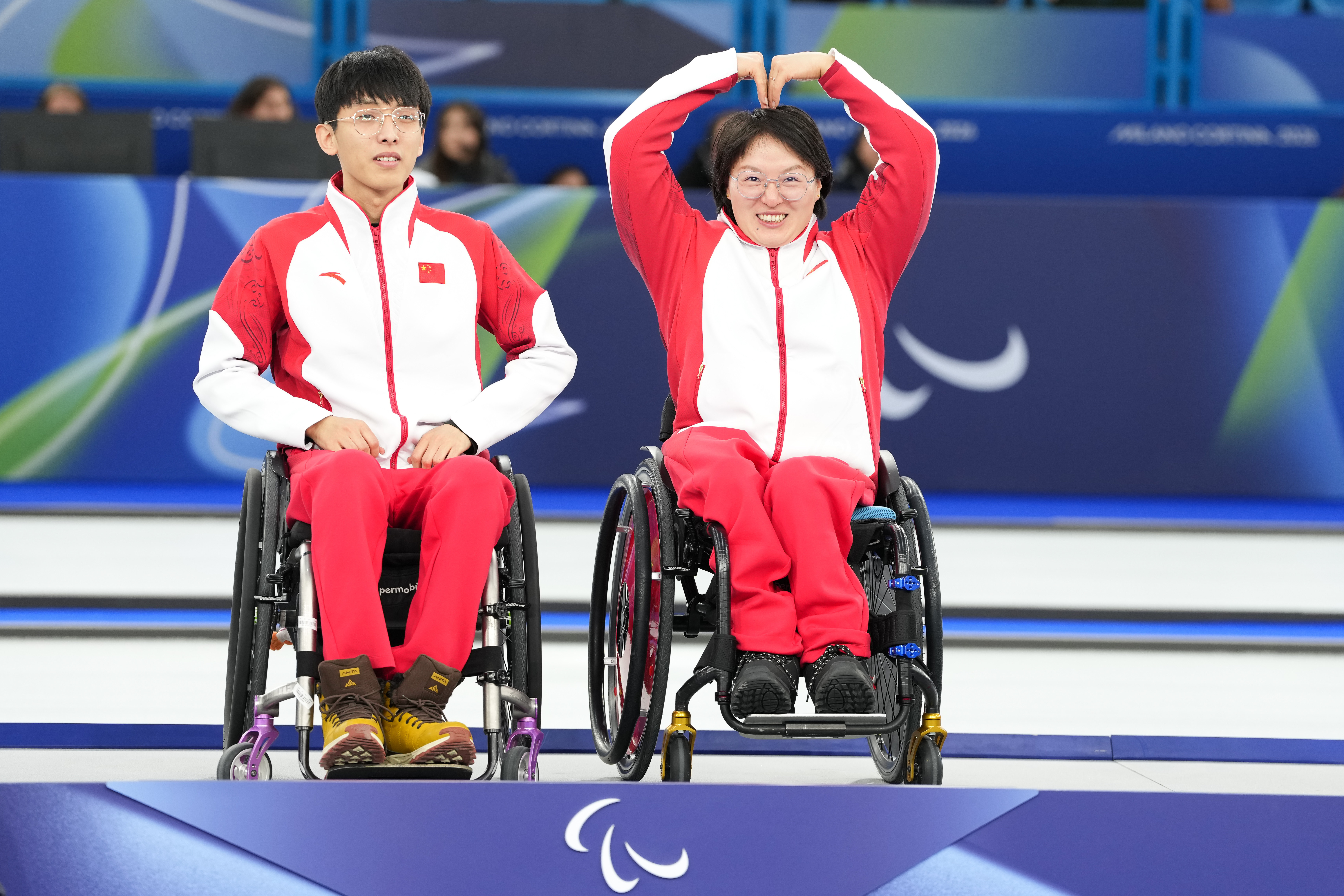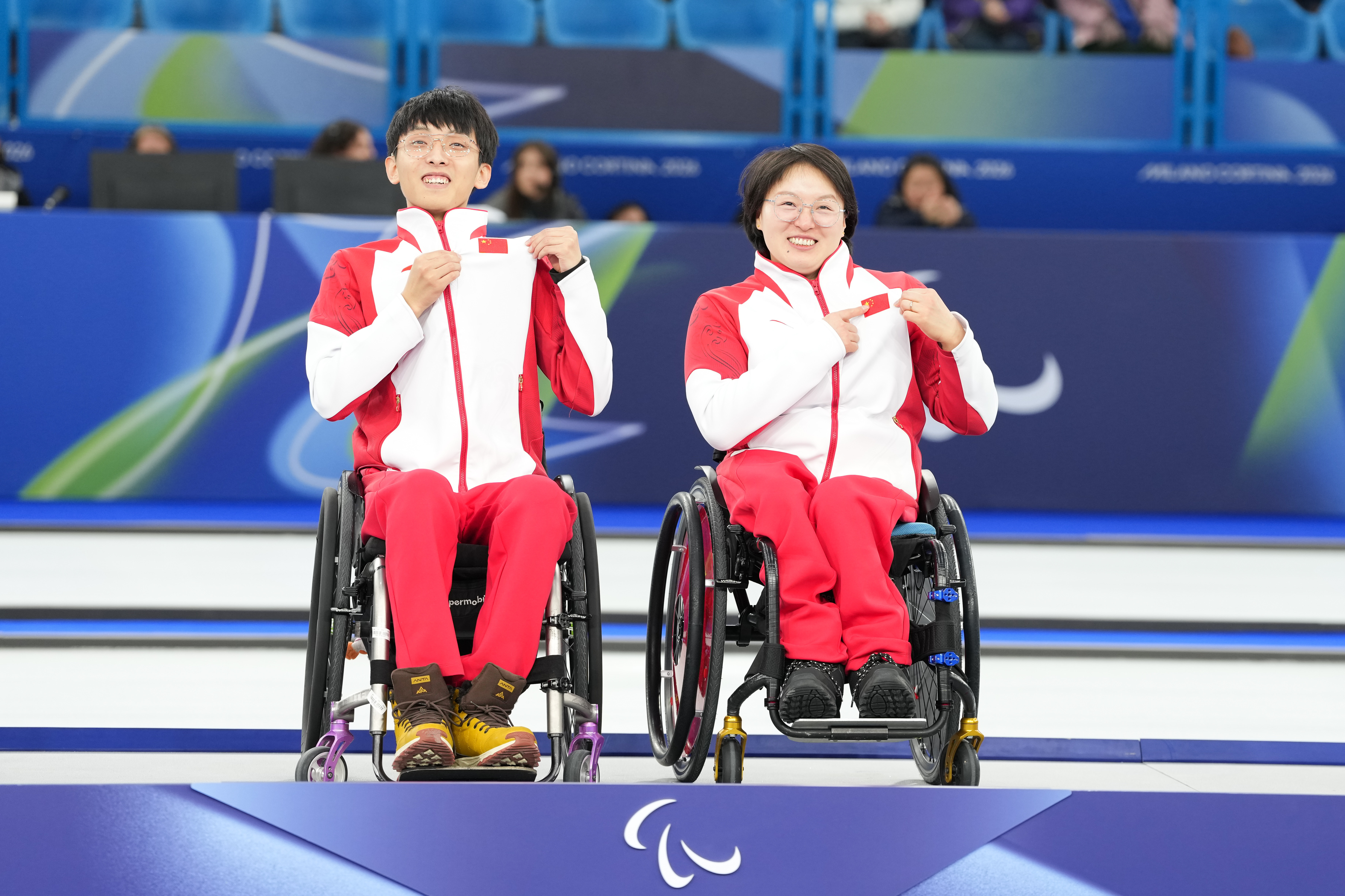 作为冬残奥会新增项目,轮椅冰壶混合双打,中国组合杨金桥/王蒙,稳打稳扎,最终决赛中加赛力克韩国队,勇夺冠军。冠军组合在领奖台上,开心地收放自如,展现自我魅力。冬奥会 此刻皆不凡
