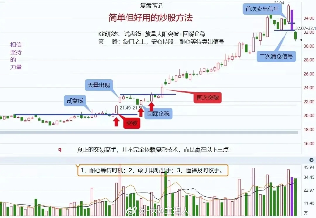 核心逻辑:通过K线形态判断主力“建仓-洗盘-拉升”三步,低吸高抛,避免追涨杀跌。