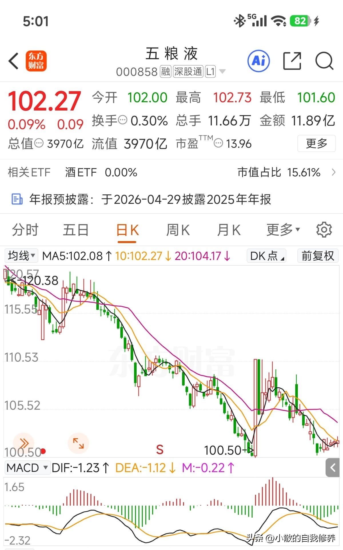 这走势也是醉了,你要说走势不好吧,居然收了五连阳,但你要说涨了吧,五连阳加起来累计涨幅不到一个点[捂脸]! 百元关口倒是守得严严的,手上点小仓位操作意义都没有,继续留着等翻25年年报跟分红的底牌! 目前新任董事长还未出炉,会不会年报上再洗下,给后任留足够的空间?