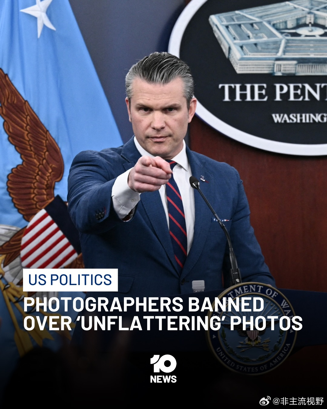 这又是一例子:美国五角大楼禁止新闻摄影师参加关于美国以色列与伊朗战争的简报会,美国国防部长格塞斯的照片被他的工作人员认为不好看,摄影师已被排除在3月4日和3月10日的简报会之外,从那以后,只有国防部工作人员御用摄影师被允许进入简报会拍摄。