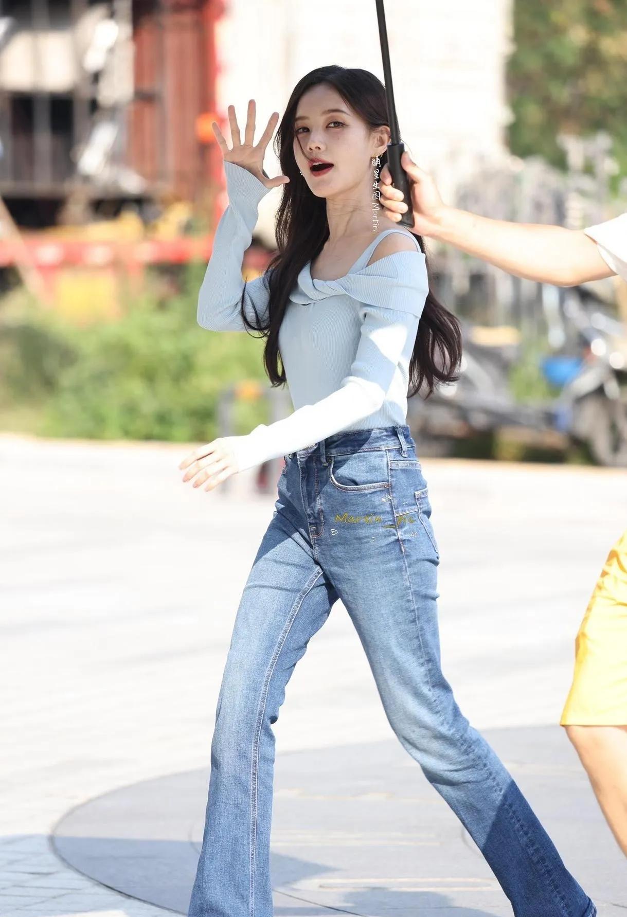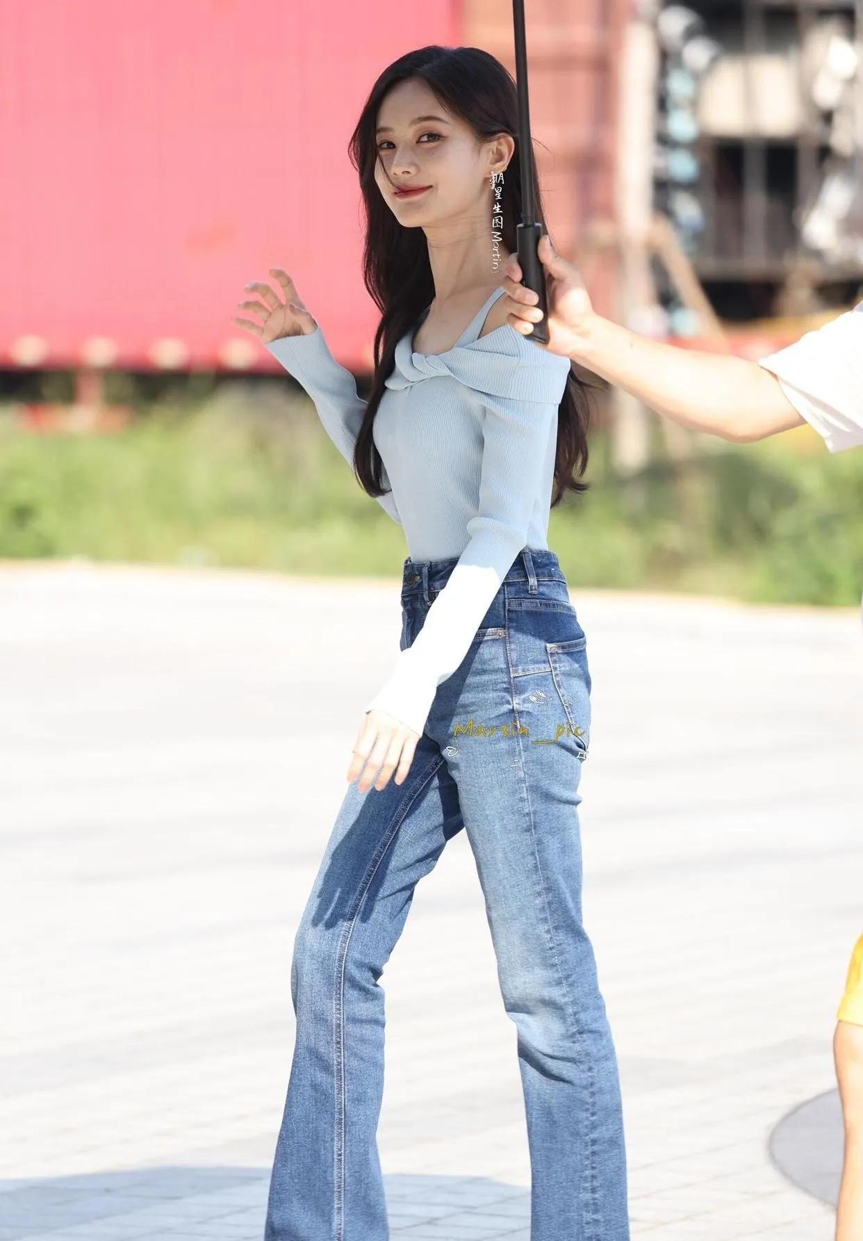 🔥李一桐身材太绝了! 露肩针织衫+牛仔裤,S曲线直接焊在身上,美到犯规! 李一桐 身材管理