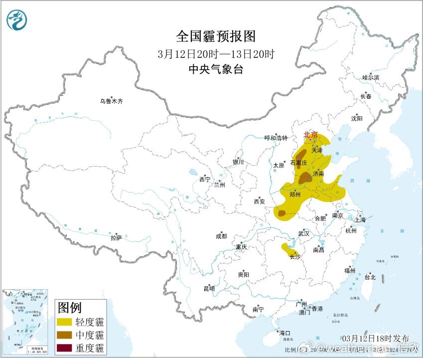 【雾和霾】从18时空气质量看,华北黄淮等地有轻度-中度污染,局地重污染,对应有霾。今晚到明天,偏东偏南区域,也就是河北南部、山东、河南的霾持续。不过明天白天随着降水自西向东逐渐展开,偏西偏北区域的霾会逐渐消减。后天随着冷空气和降水继续南下,河北南部、河南、山东的霾基本结束。