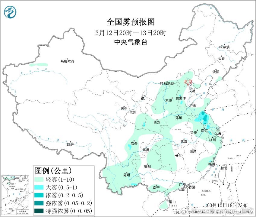 另外今晚到明晨,河北西南部、安徽东北部、江苏中北部等地的部分地区有大雾,局地能见度低于500米。尤其是江苏一带,地面有偏东风输送水汽,高空为脊前偏北气流,利于夜间晴朗辐射降温,导致水汽凝结,进而形成大雾。