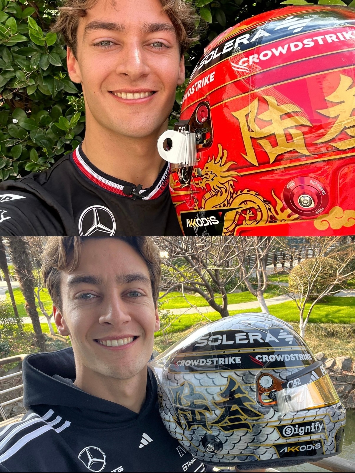 我们拉塞尔为F1上海站准备的特别版涂装盔到了!今年是青花瓷➕山水主题,后面是大写数字的陆叁!他24年来比赛的时候就说,在中国比赛很棒!希望用一些特别的东西来庆祝,于是每一年都!呜呜呜呜我们最好的乔拉!f1f1上海站卷妹的唠嗑乔治拉塞尔