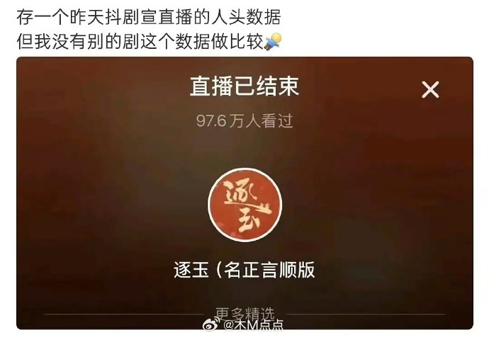 爆剧 养老剧 逐玉剧宣直播看过的人数对比,这才是真正的爆剧爆剧 配角上桌