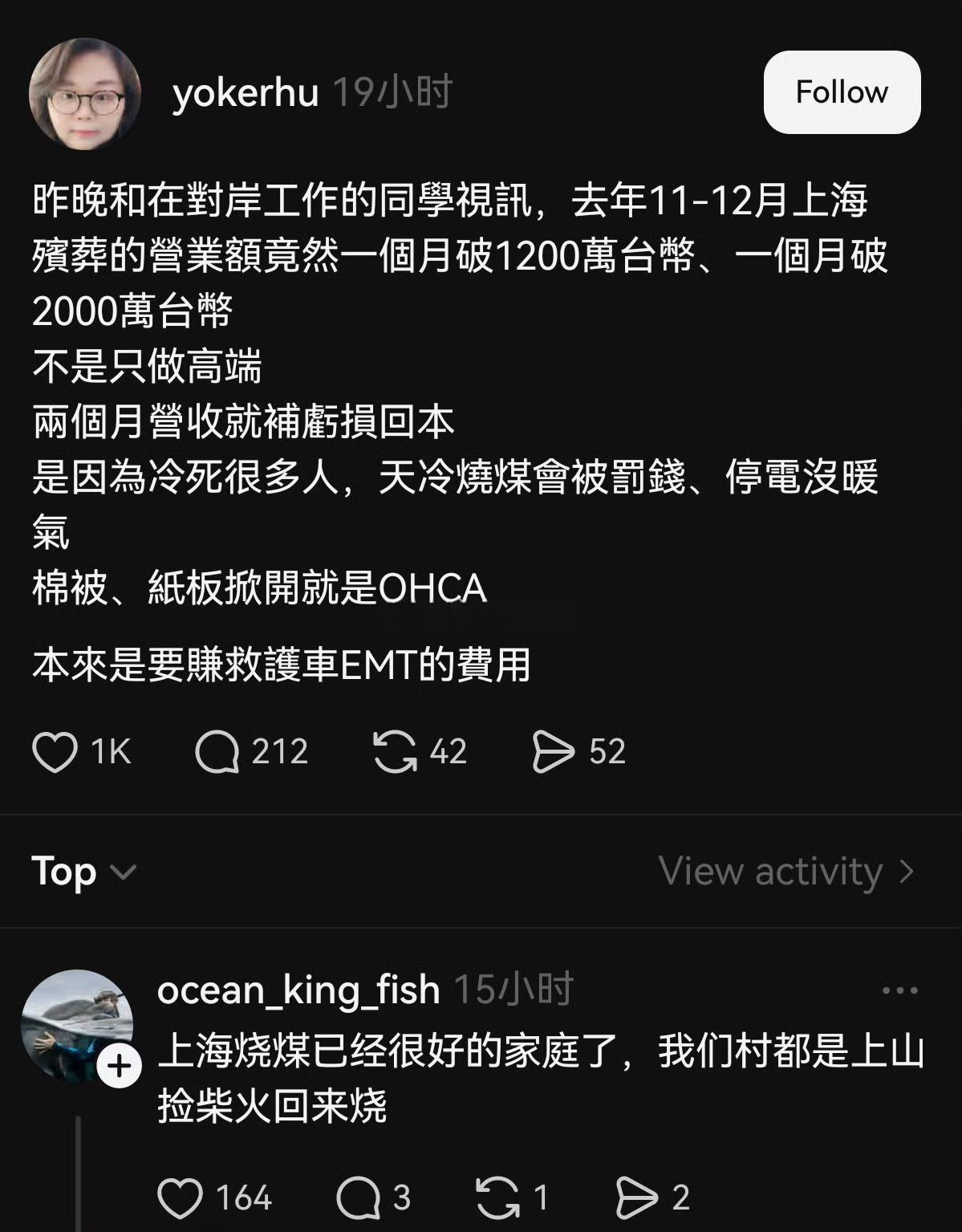 笑死了![笑哭] 以前台湾人说“大陆人吃不起茶叶蛋!” 现在说“上海人冬天要烧煤取暖…”