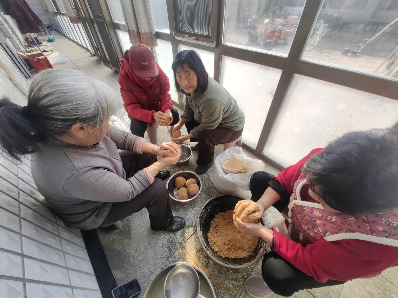 朋友们,你们知道笸箩里的大圆球是什么吗? 今天早晨,老伴就开始张罗人,叫了四个帮忙的。 师傅负责拌面,四个人负责攥大面球,面球攥的越瓷实越好。 五个人忙乎了两个多小时,才把活干完。 攥完以后,就把这些大面球放在封闭里晾晒。 晒了不长时间,整个封闭里就充满了香气,都是大面球散发出来的,馋的小月月扒着闻。 有人知道这大面球叫什么吗?是用来干什么的?