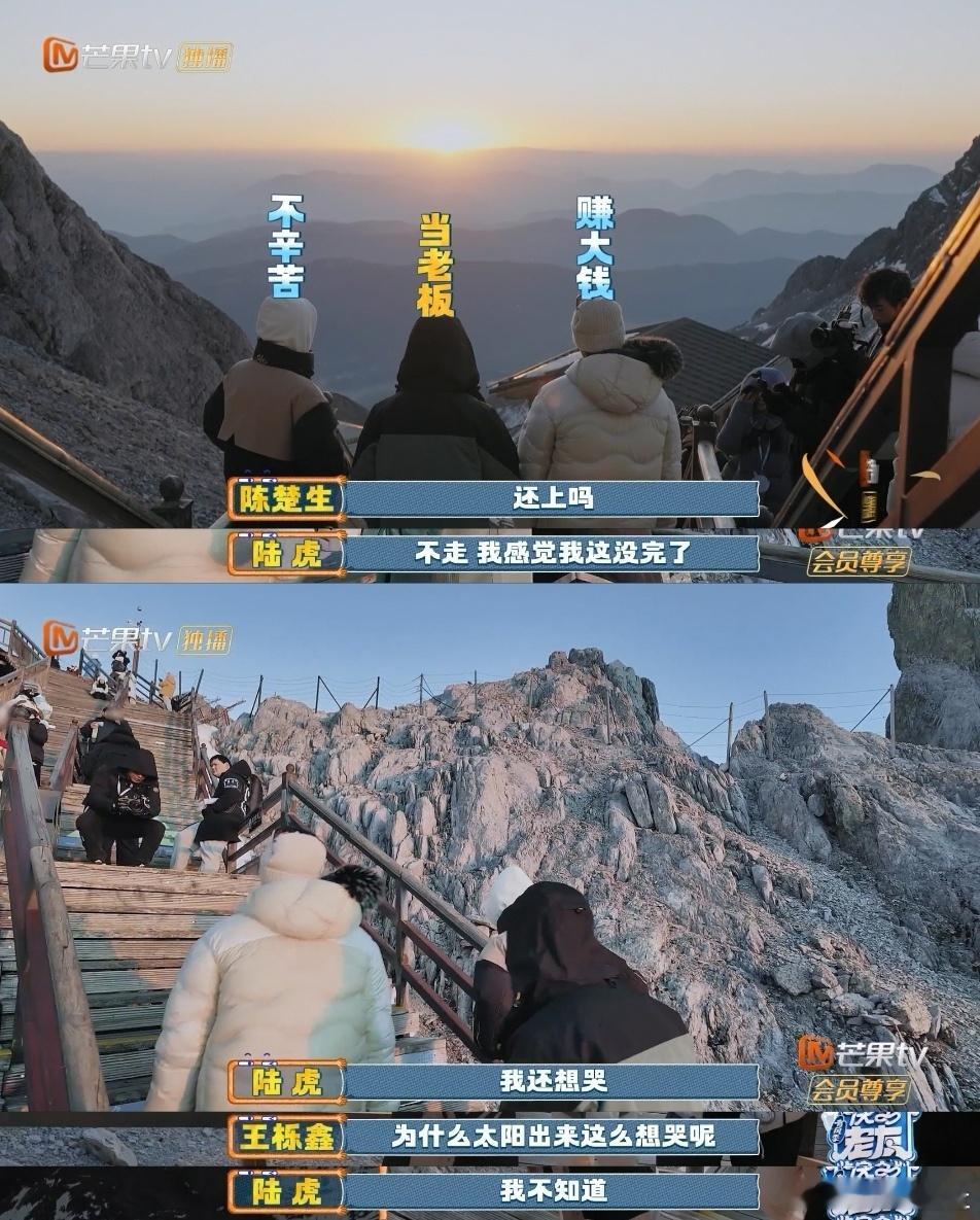 王栎鑫陆虎看日出落泪谁看到这么壮阔的日出不会感动到落泪呢,王栎鑫陆虎完全有感而发来的,别再嘴硬了哥们快乐老友记收官快乐老友记