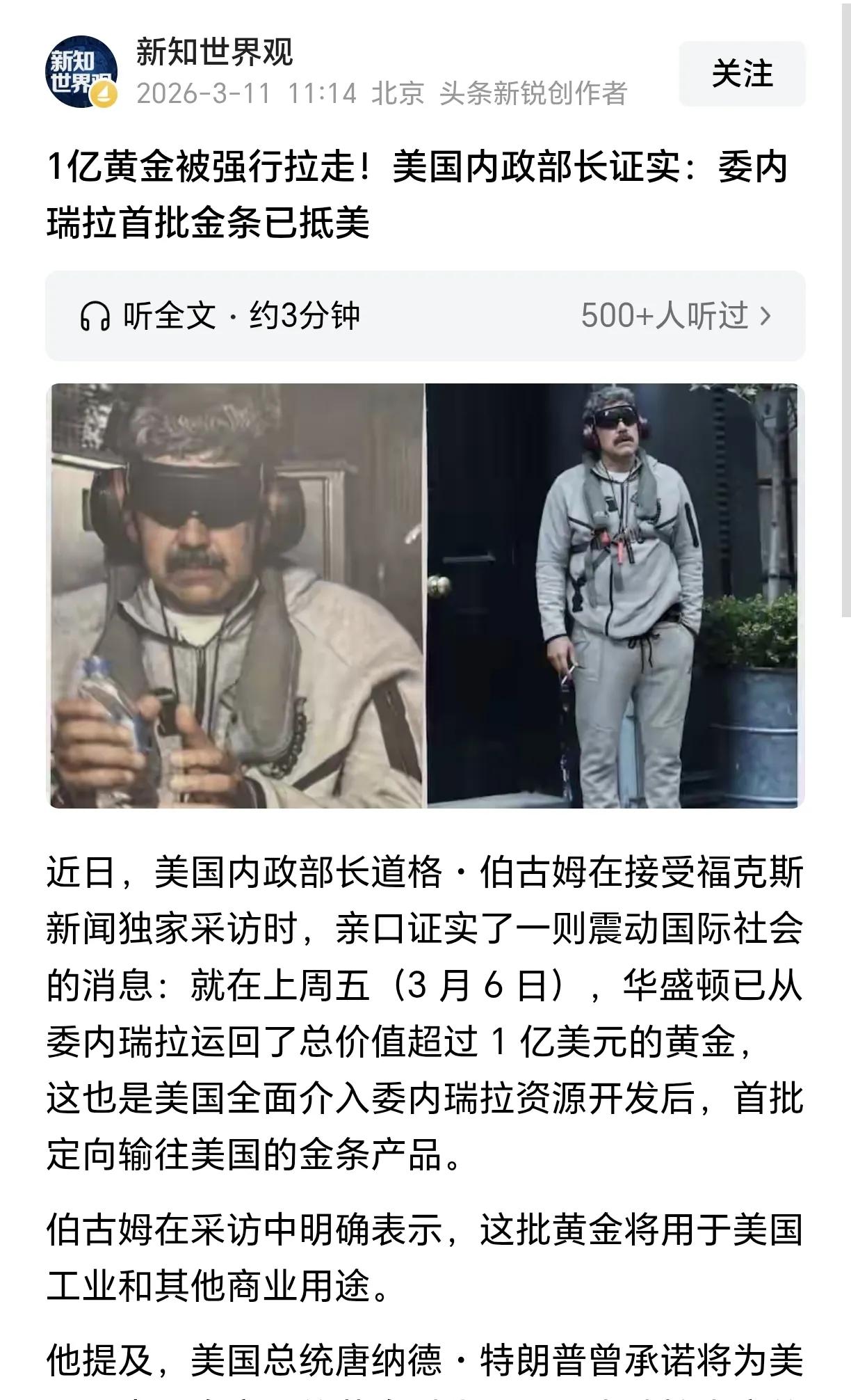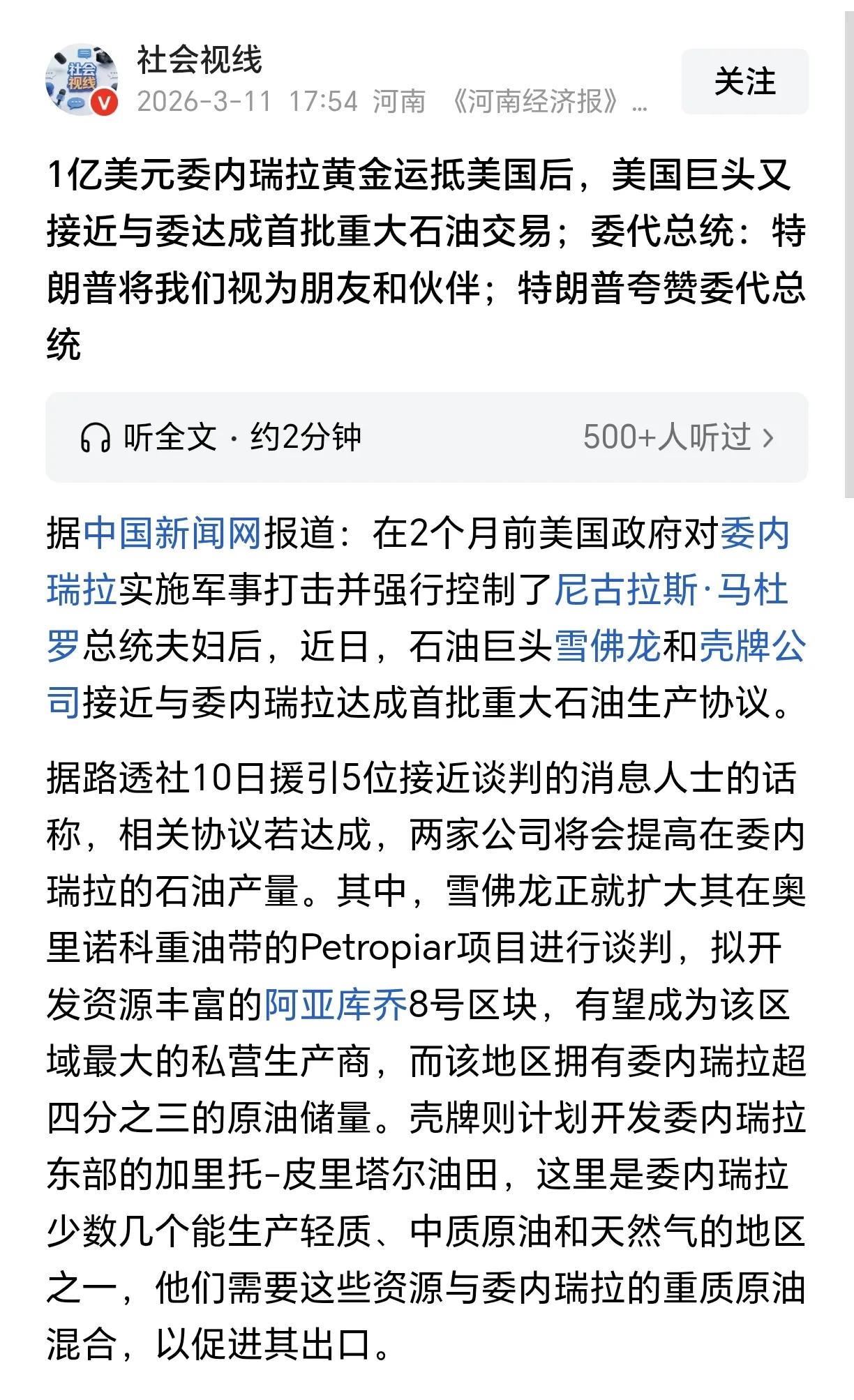 委内瑞拉自从总统马杜罗被美国抓了后,统治阶层是彻底跪倒向美国了,石油、1亿黄金……任由美国予取予求,委代总统还向特朗普示好、完全没有主权国家首脑的样子。 最近的新闻热点都放在伊朗和美国、以色列的战争上了,委内瑞拉除了总统被抓时有点热度外、现在没什么讨论度,基本快沦为美国新时代的殖民地了。 这也证明了伊朗现在的反抗斗争是很有必要的,即使封锁霍尔木兹海峡、面临外部经济制裁也不能跪,还要彻底清除内鬼,未来要是伊朗也投了、下场只会比现在的委内瑞拉更惨。 委内瑞拉领导人 委内瑞拉主权 委内瑞拉博弈 美国抓马杜罗 委内瑞拉石油战 美袭击委内瑞拉