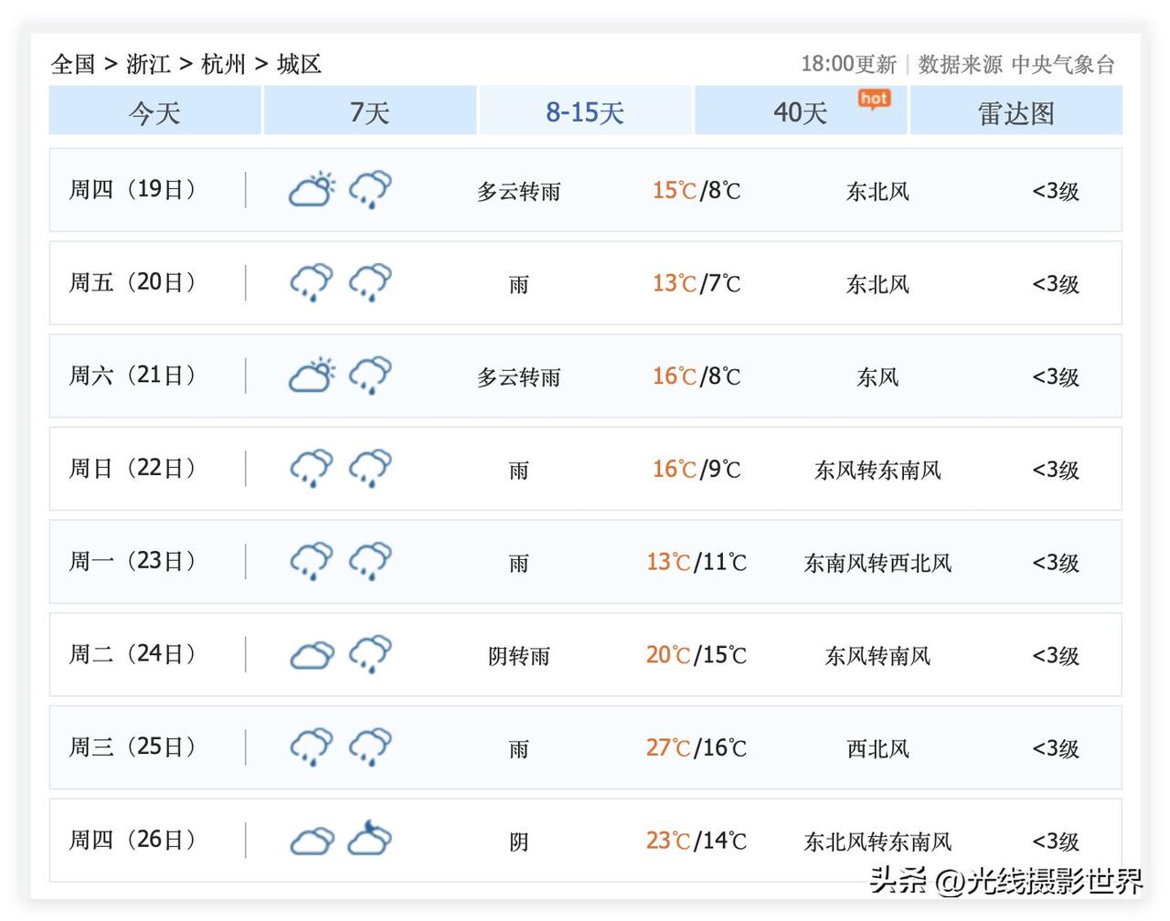 哎!3月16日到26日,浙江省杭州市,可能阴雨连绵为主……这让很多去年冬天就预定了3月中下旬飞杭州赏花的游客,很是忐忑不安……嗯,中央气象台认为,3月15日到26日,长江流域,普遍天气不太好,大趋势来说……而且,因为最近天气确实持续晴好,所以,对于3月15日以后的阴雨连绵的天气预报,大家估计都是比较相信的…… 毕竟,春天的好天气,本来就不会一直持久…… 2026年春天,长江流域,各种花儿,全都提前了10-20天开花,弄得大家很是狼狈! 最可怜的就是去年就订好了2026年3月20日到30日去贵州省贵阳市看平坝农场樱花的小伙伴们……没有办法,以前都是这个日子……但是,今年提前了半个月…… 3月15日到18日,成渝贵,遭遇冷空气南下和降雨降温……贵阳平坝农场的樱花的高潮……这周末可能划上句号! 是的,浙江省杭州市,各种花儿也是提前了10天半个月……今年3月20日以后去杭州,可能很多花儿都不会很好,而且,这天气预报的大趋势……让大家确实更加的不安。 我也是去年冬天就计划好了今年3月下旬去浙江省杭州市西湖,踏青赏花…… 好吧,看来,2026年春天的赏花计划,确实都被打乱了! 那就好好计划2027年春天的赏花计划吧!