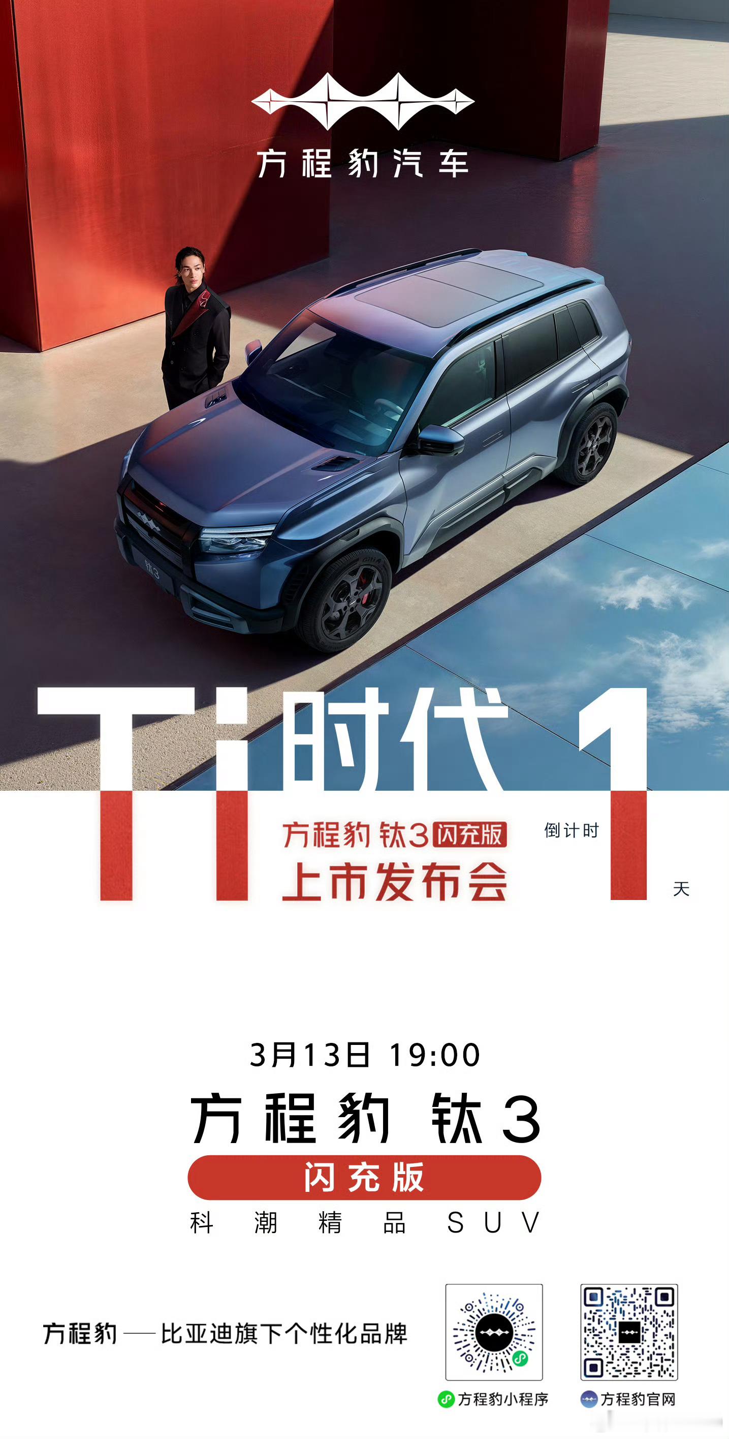 方程豹钛3闪充版上市发布会3月13日19:00,明天见!大v聊车 一起开启全民生活「Ti时代」比亚迪
