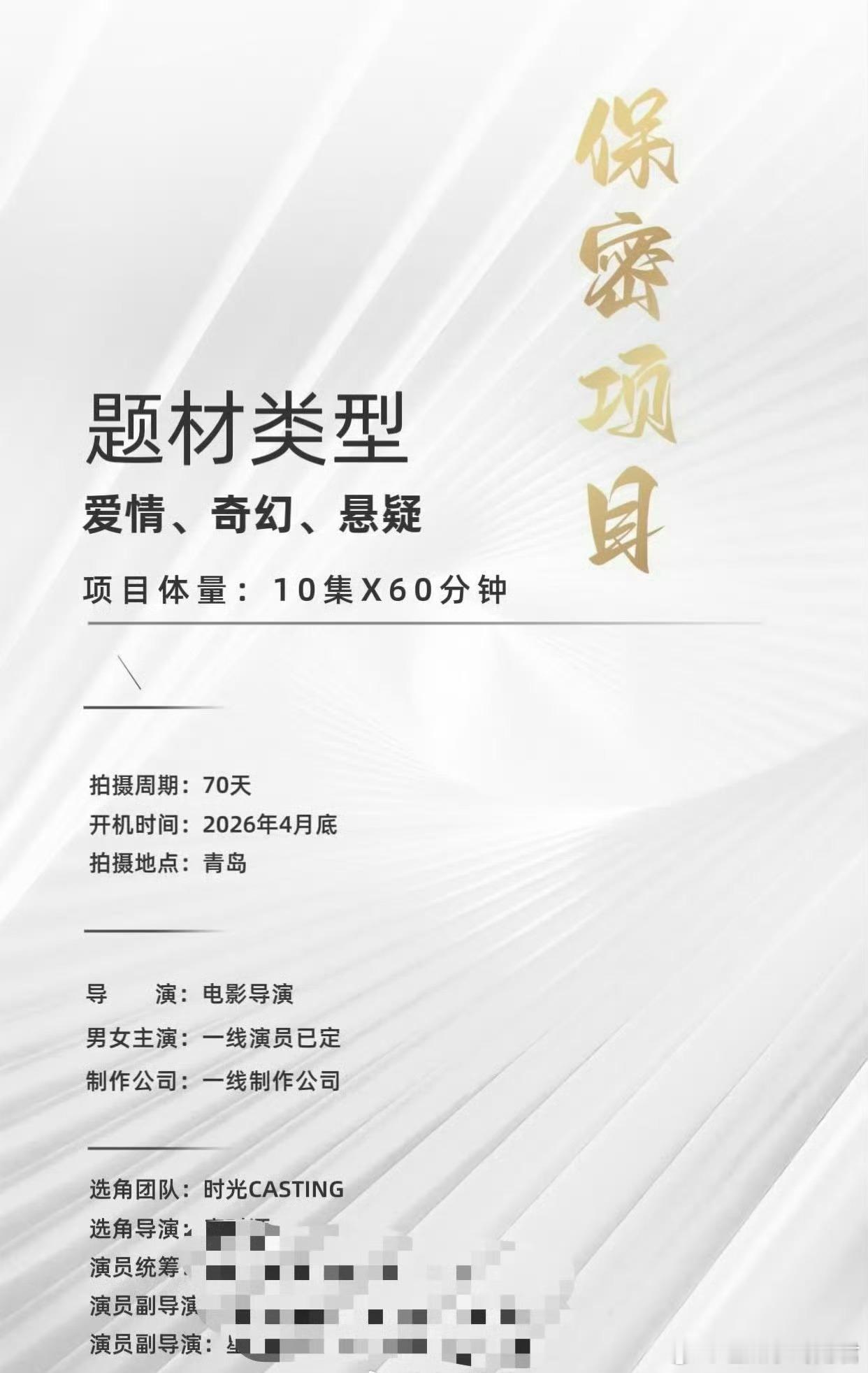 精品短剧集《我与爱同谋》主演:关晓彤、林一题材:爱情、奇幻、悬疑出品:万达影业、儒意影视总监制:陈祉希开机时间:4月底拍摄地:青岛拍摄周期:70天
