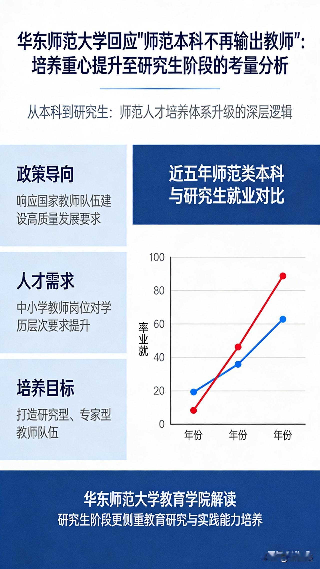 顶尖师范生也要“卷”硕士?华东师大停招本科师范生,背后真相扎心了! “本科毕业想当老师?先读个硕士再来吧!” 近日,华东师范大学党委书记梅兵的一句“师范本科基本不再输出教师”,瞬间引爆教育圈。作为师范院校的“领头羊”,华东师大不仅暂停了学前教育本科招生,更明确将培养重心全面上移至研究生阶段。这一记“重磅炸弹”,宣告了顶尖师范教育“精英化”时代的到来,也让无数考生和家长陷入了沉思。 停招本科,是“瘦身”,更是“升级” 别以为学校不缺老师了,这恰恰是“提质”的开始。 随着新生儿数量波动式下降,基础教育阶段确实面临生源峰值的结构性变化。但与此同时,国家推行“小班化教学”和教育强国战略,对高素质、研究型教师的需求反而在增加。华东师大的选择很明确:将资源从本科层次的“规模扩张”,转向硕博层次的“精雕细琢”。毕业即硕士,将成为顶尖师范生的新常态。 “铁饭碗”门槛飙升,未来老师要“文武双全” 未来的讲台,不仅要站得住,更要站得高。 以前,本科毕业能教书是常态;现在,重点中学招聘动辄要求“博士学历”已是公开的秘密。华东师大此举,正是为了应对这种“学历内卷”。同时,学校还在全校范围内铺开“人工智能+”和“跨学科”课程包,这意味着未来的优秀教师,不仅要懂教育学,还得会用AI、懂数据,甚至是某个理工科领域的专家。 结语 “师范本科不输出教师”,并非否定本科教育,而是教育升级的必然。 它传递出一个清晰的信号:闭眼上师范就能当老师的好日子一去不复返了。对于有志于投身教育的学子来说,唯有拥抱变化,提升自我,才能在未来的竞争中站稳讲台。 (信息来源:南方周末、中华网、澎湃新闻、今日头条)
